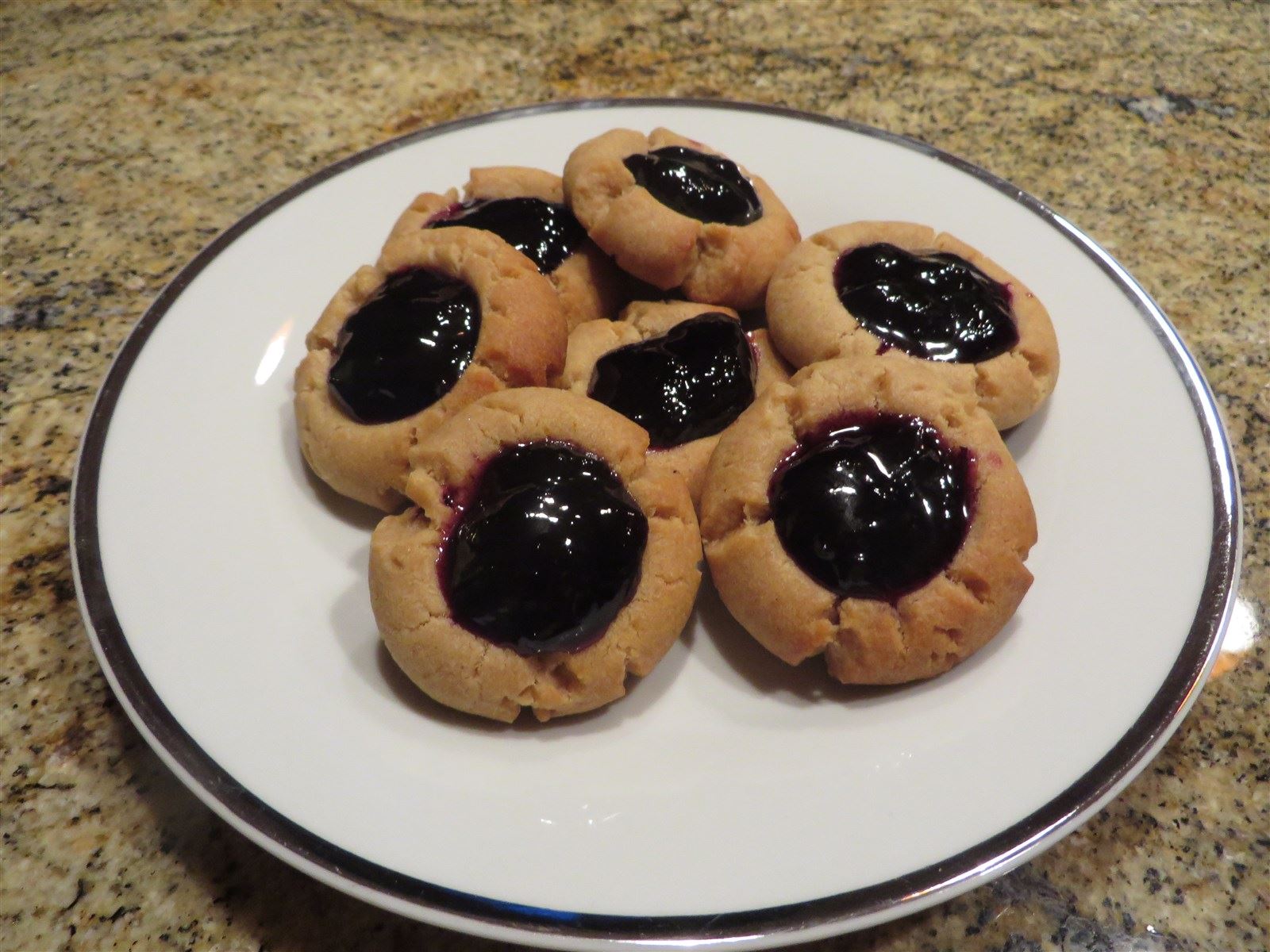 PBJ Thumbprints - This is a fun spin on a peanut butter and jelly sandwich that we make using a high quality, small batch locally produced jam found in our area; you choose the flavor: Grape or Strawberry.