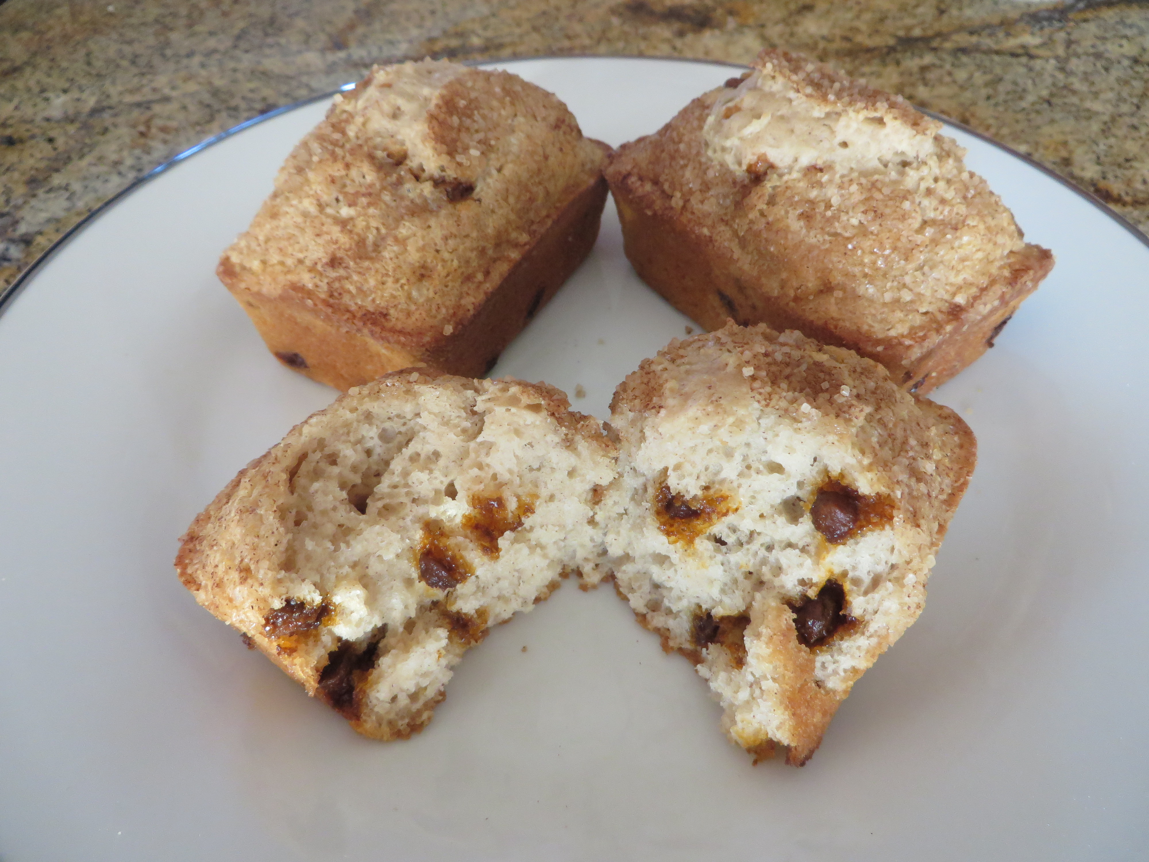 Chocolate Chip - A tender muffin mini-loaf filled with miniature semi-sweet chocolate chips and topped with coarse turbinado sugar.