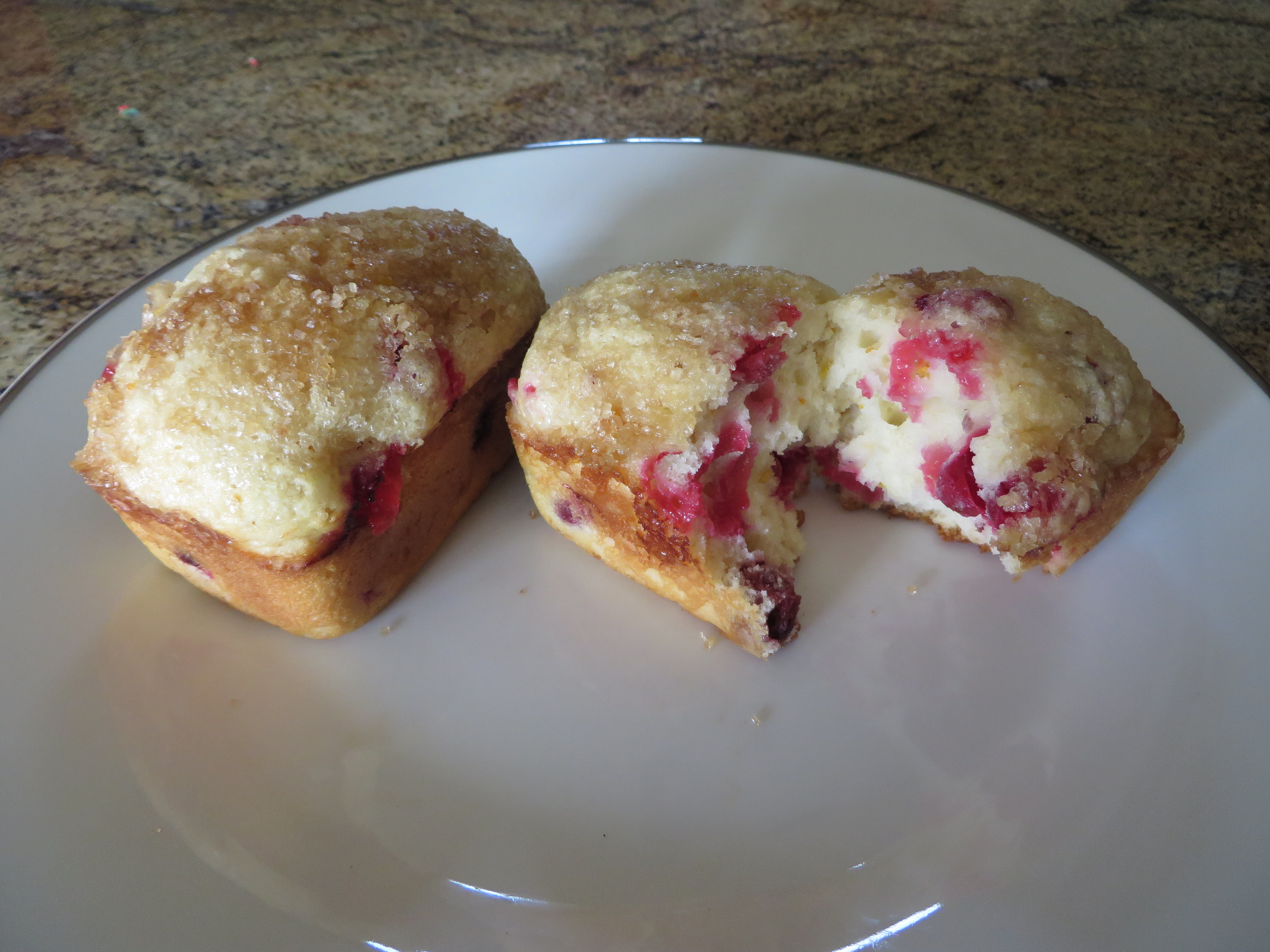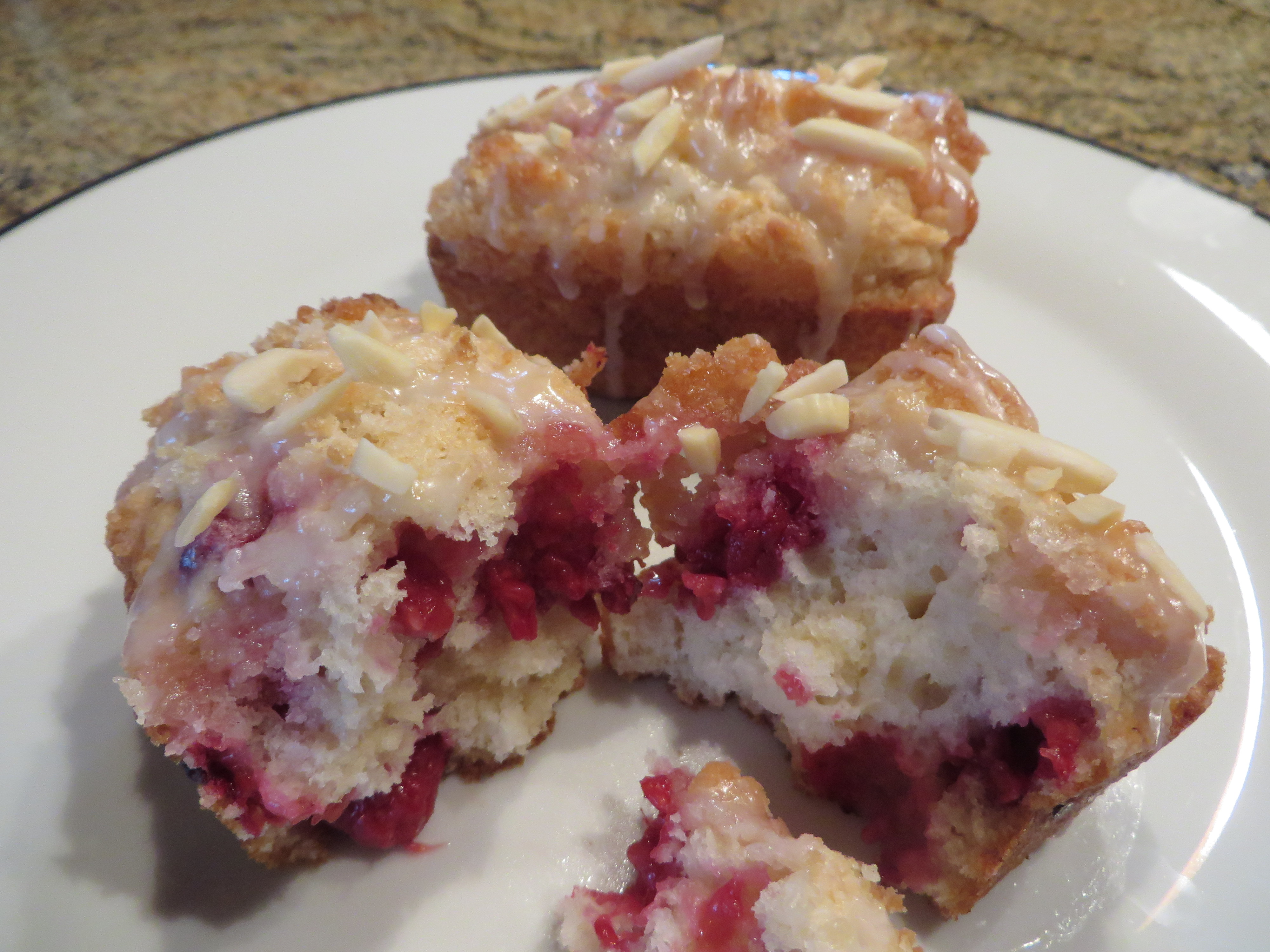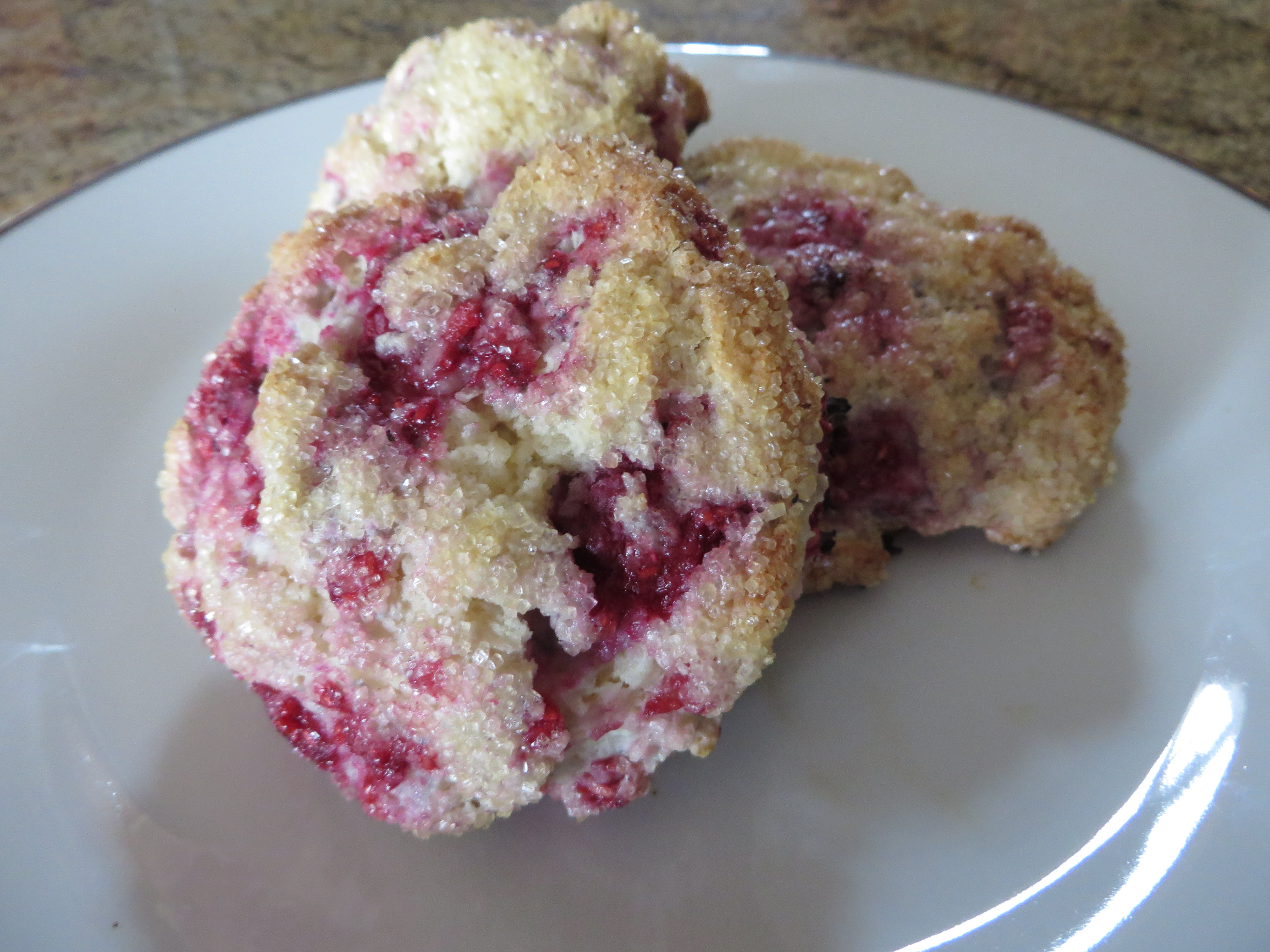 Raspberry - Delicious scones; packed with luscious raspberries and topped with simple Turbinado Sugar that give these scones a tiny bit of sweetness and a nice 'crunch'.