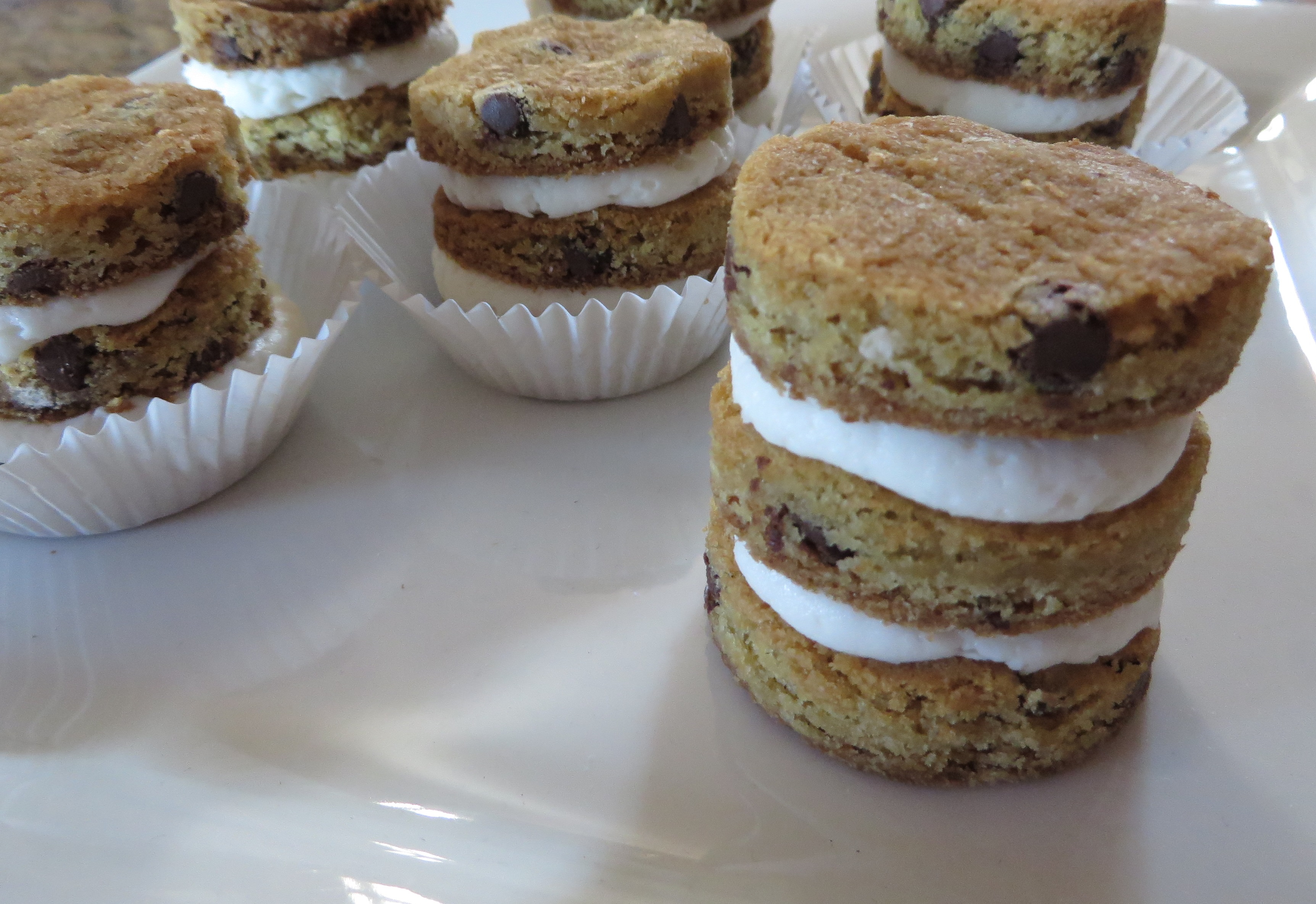 Chocolate Chip Cookie Cakes - Delicious, soft chocolate chip cookie rounds layered with our amazing vanilla buttercream.