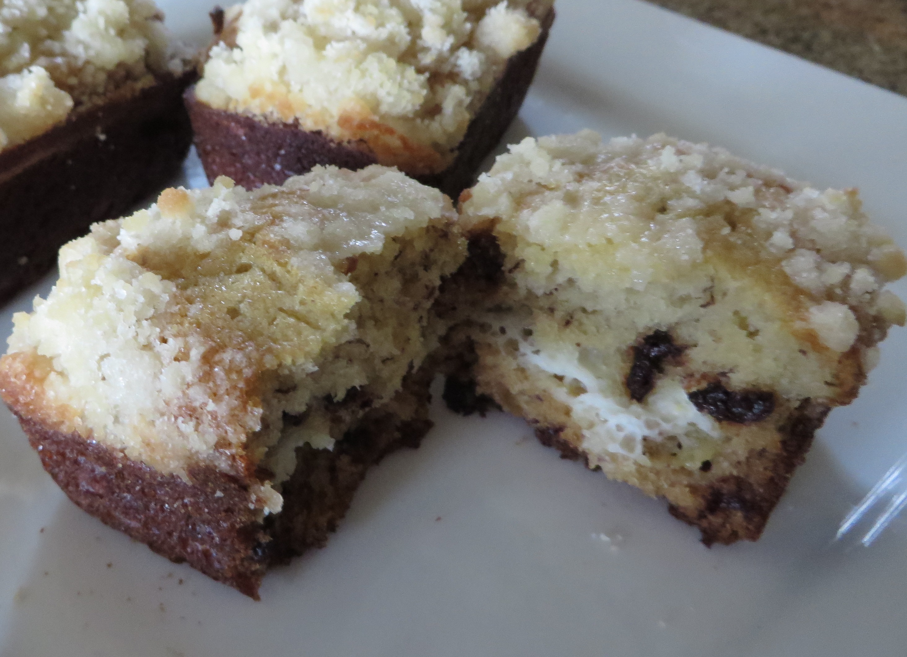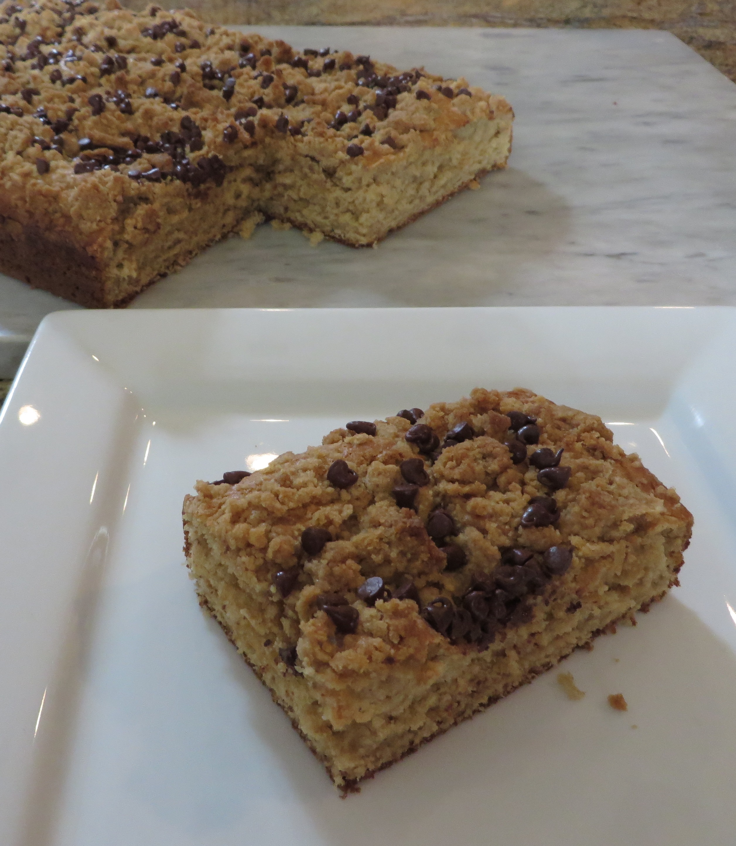 Peanut Butter Chocolate Chip - This is a fantastic snack cake. Peanut Butter-y and good with a peanut butter and mini chocolate chip crumb topping. A favorite with kids.