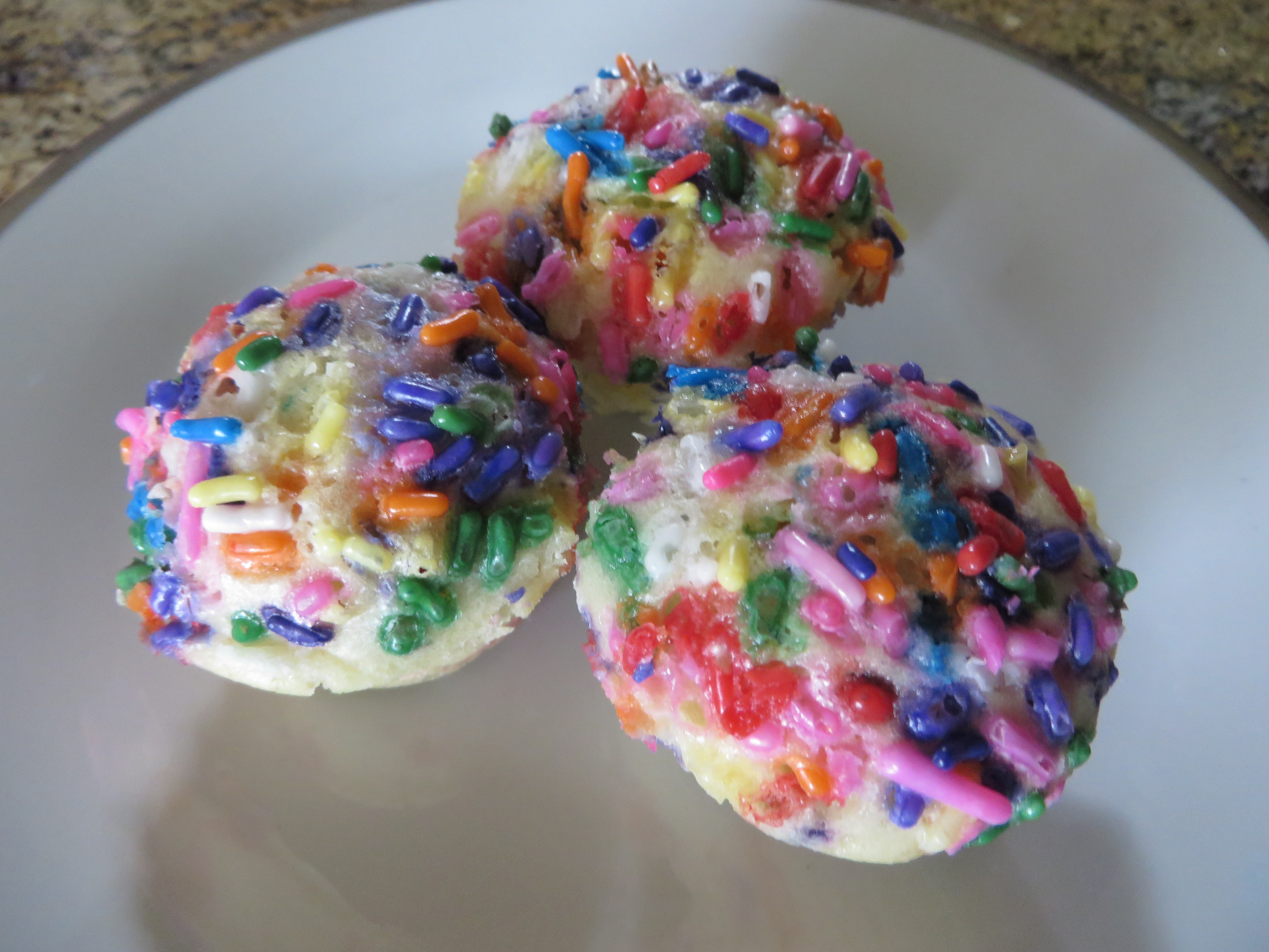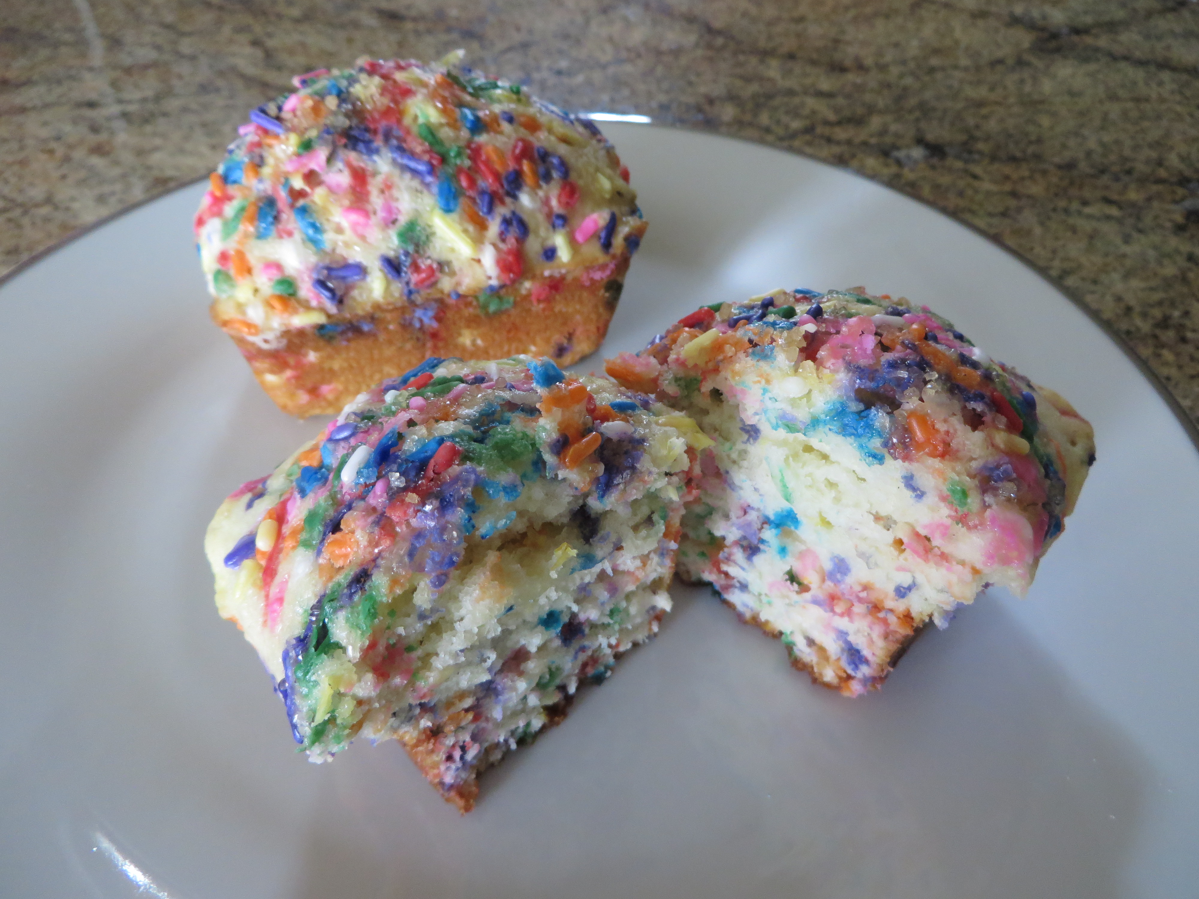 Sprinkle - This is a perfect 'kid muffin' or even a special birthday breakfast muffin treat. It's filled with rainbow sprinkles, then topped with turbinado sugar and more rainbow sprinkles.
