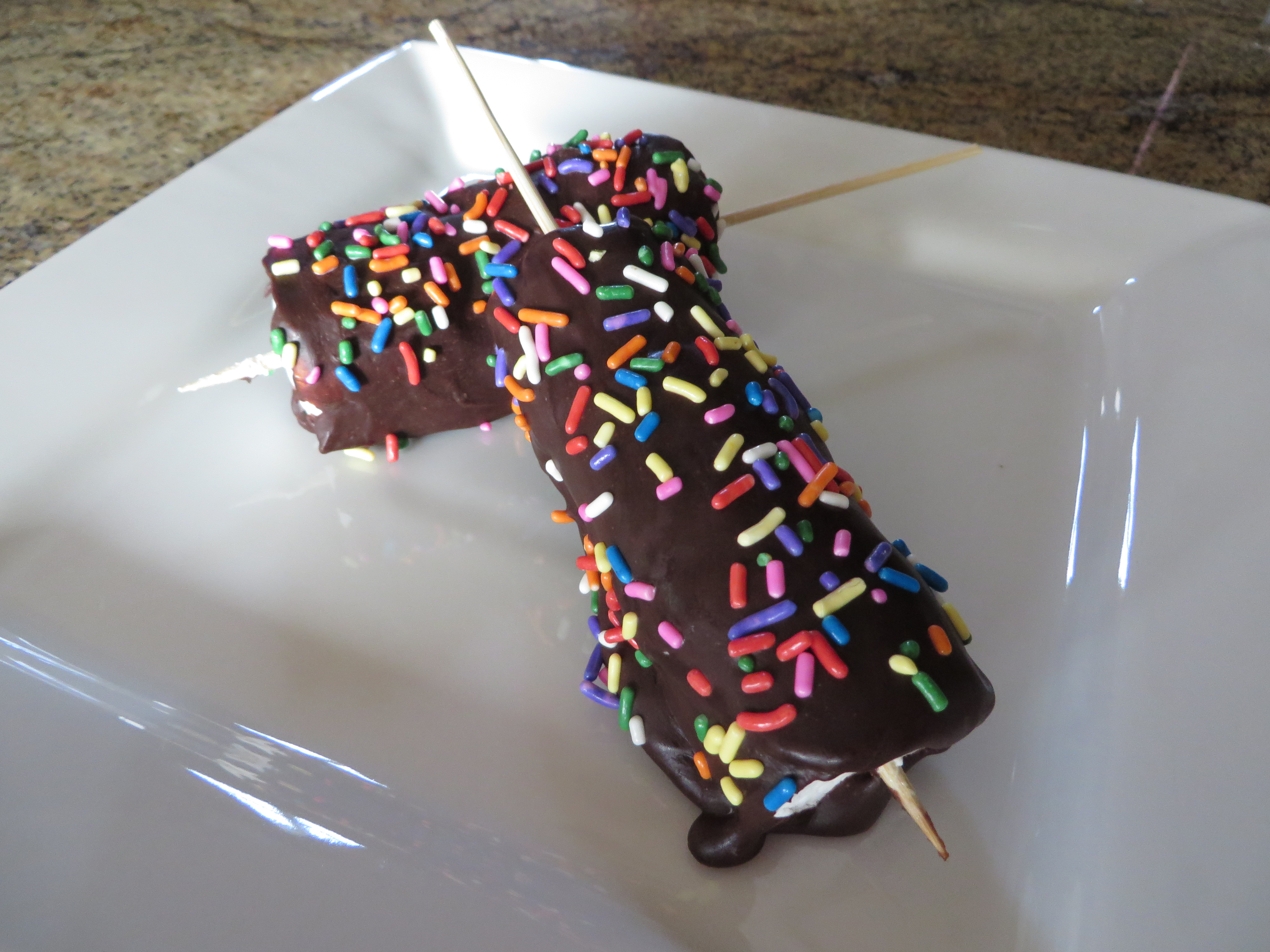 S'mores Sticks - Really fun treats - 'fingers' of Graham Crackers that sandwich our Marshmallow Filling dipped into Chocolate and laft to harden on their end - easy to grab and even easier to eat!