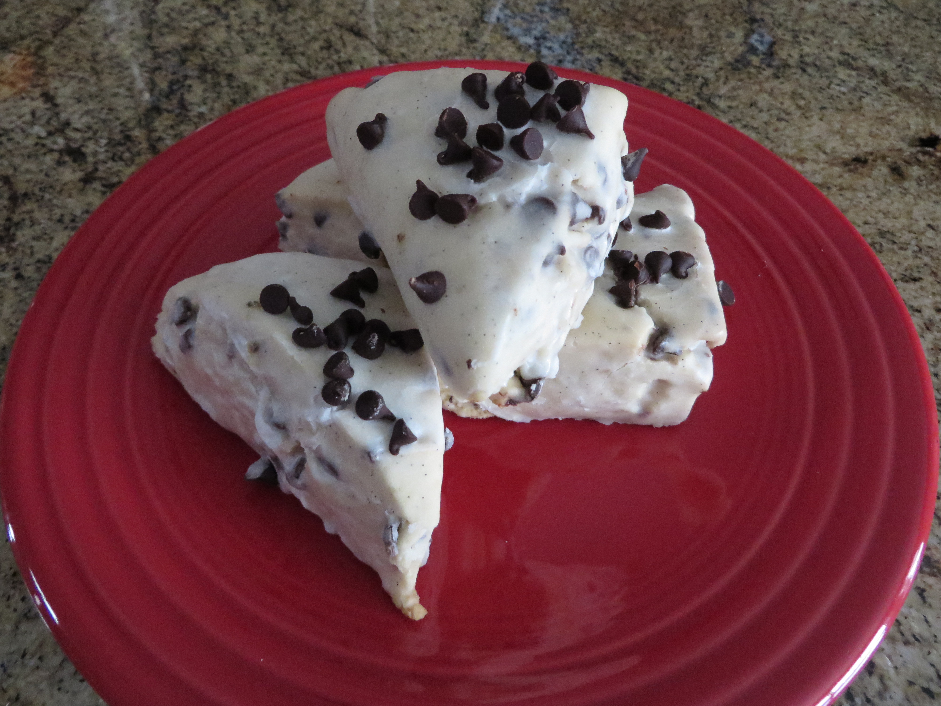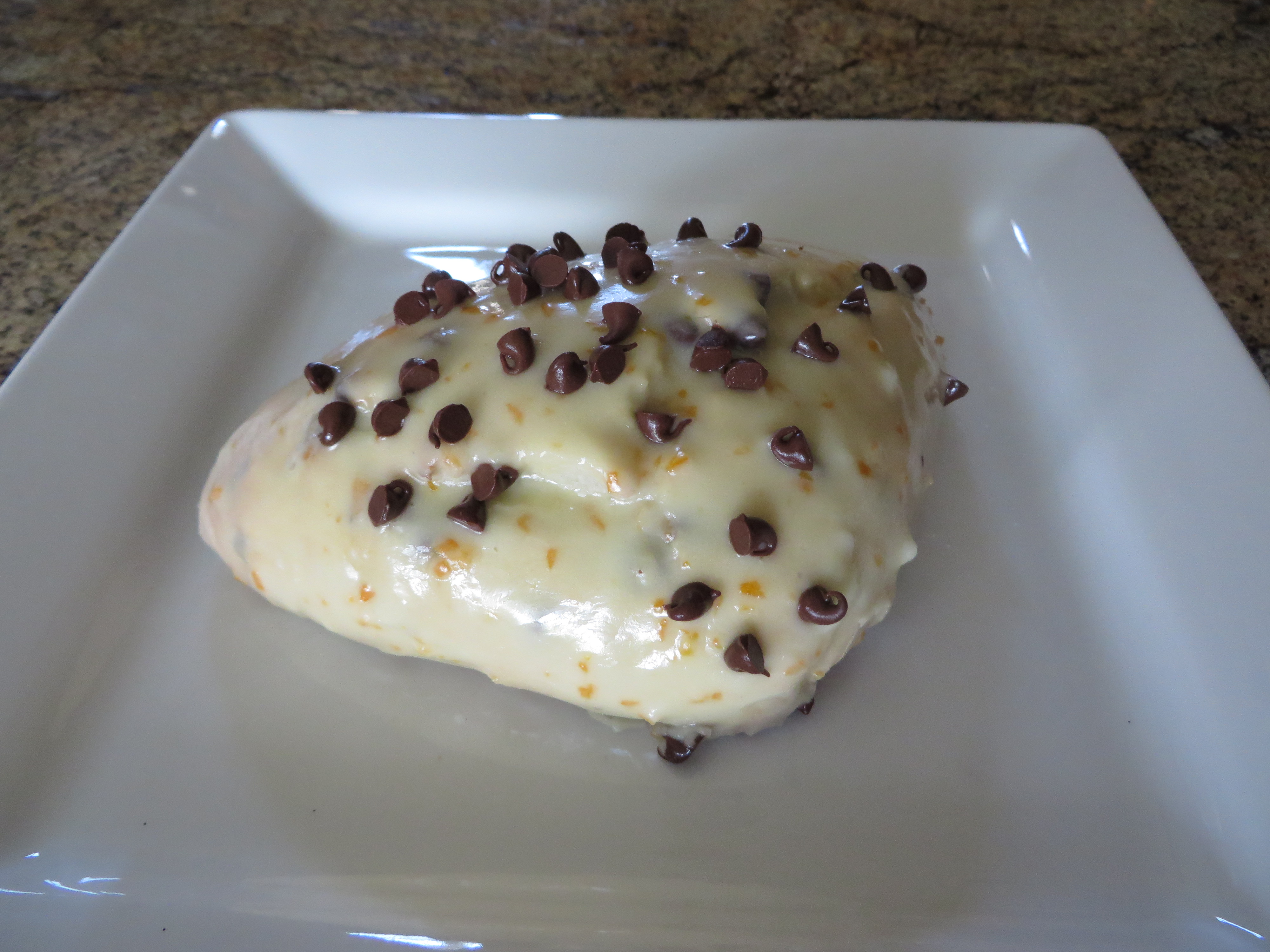Orange Chocolate Chip - It's a scrumptious breakfast treat based on the very popular local flavor combination. We start with a delicious fresh Orange scone, add mini chocolate chips, then glaze them with a fresh orange glaze and top them with even more mini chocolate chips. Fantastic.