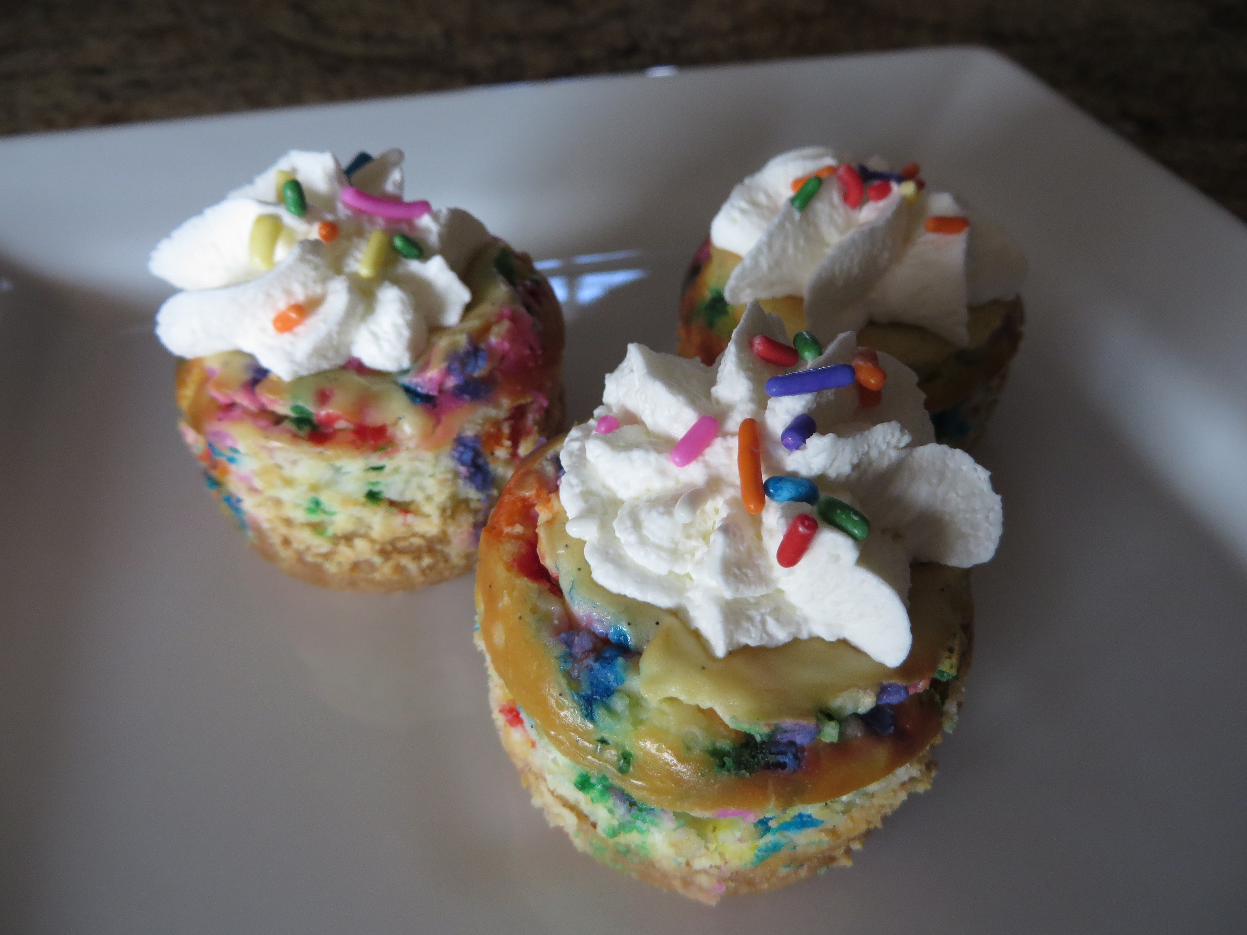 Sprinkle - Just like the popular party cake, only in cheesecake form! Your choice of sprinkles makes this cheesecake customizable to fit your theme. Shortbread crust for this one unless chocolate cookie or graham cracker is requested.