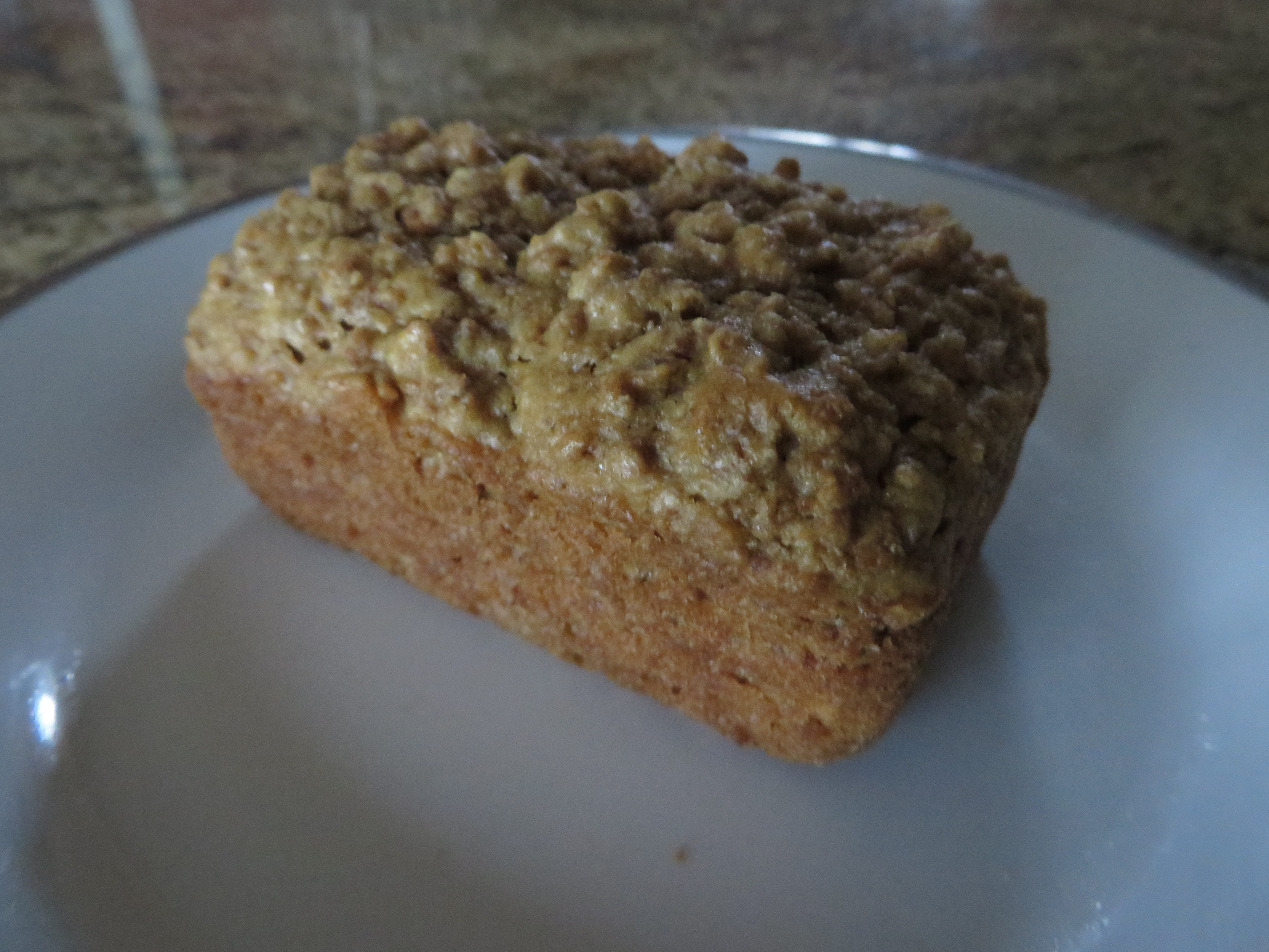 Banana - Our basic 'you can't go wrong here' banana muffin in a mini-loaf version, topped with a crumb topping.