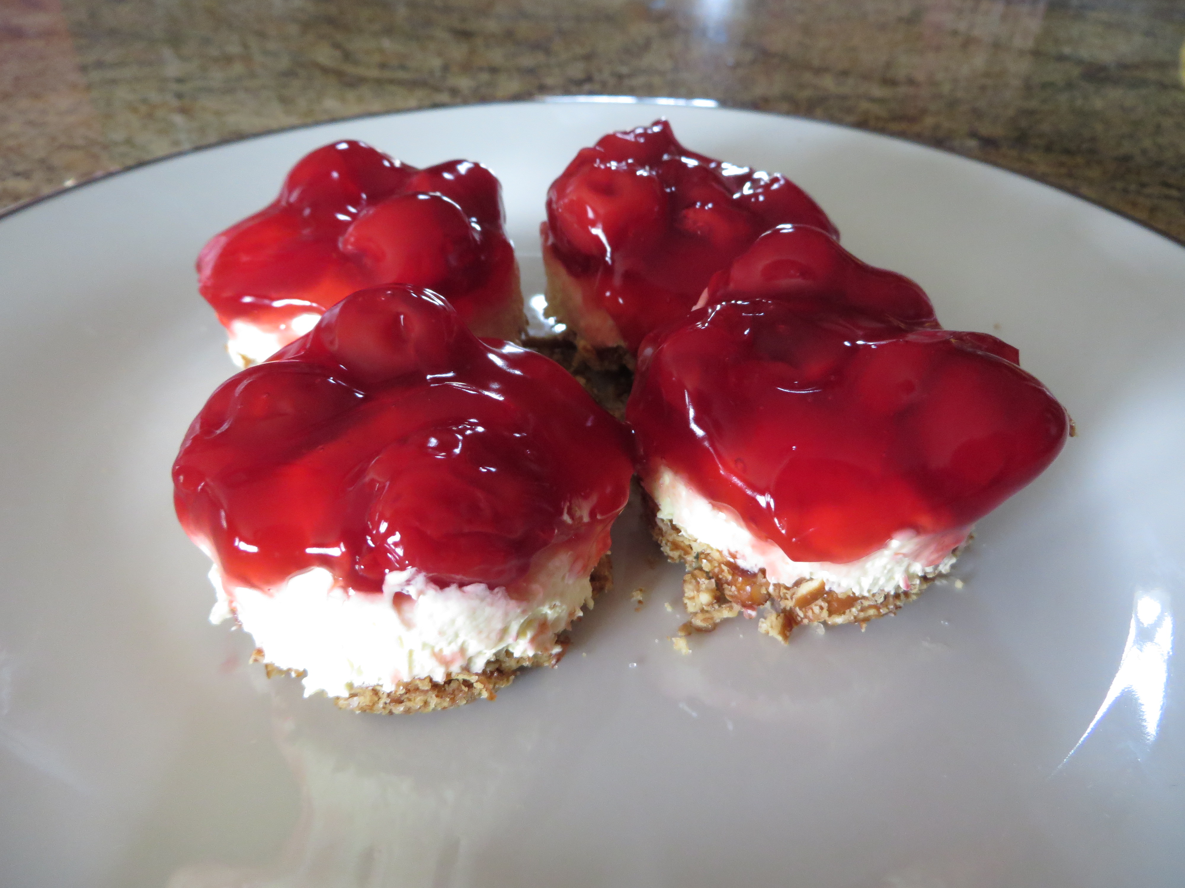 Pretzel Cheesecake Delight - Cherry, Raspberry or Blueberry - A sweetened pretzel crust topped with a no-bake, cheesecake-type layer of goodness and then finished with your choice of either Cherry, Raspberry or Blueberry Filling and Sweetened, Stabilized Whipped Cream. The sweet & salty combination of the layers is really the contrast that makes this selection so incredibly delicious.