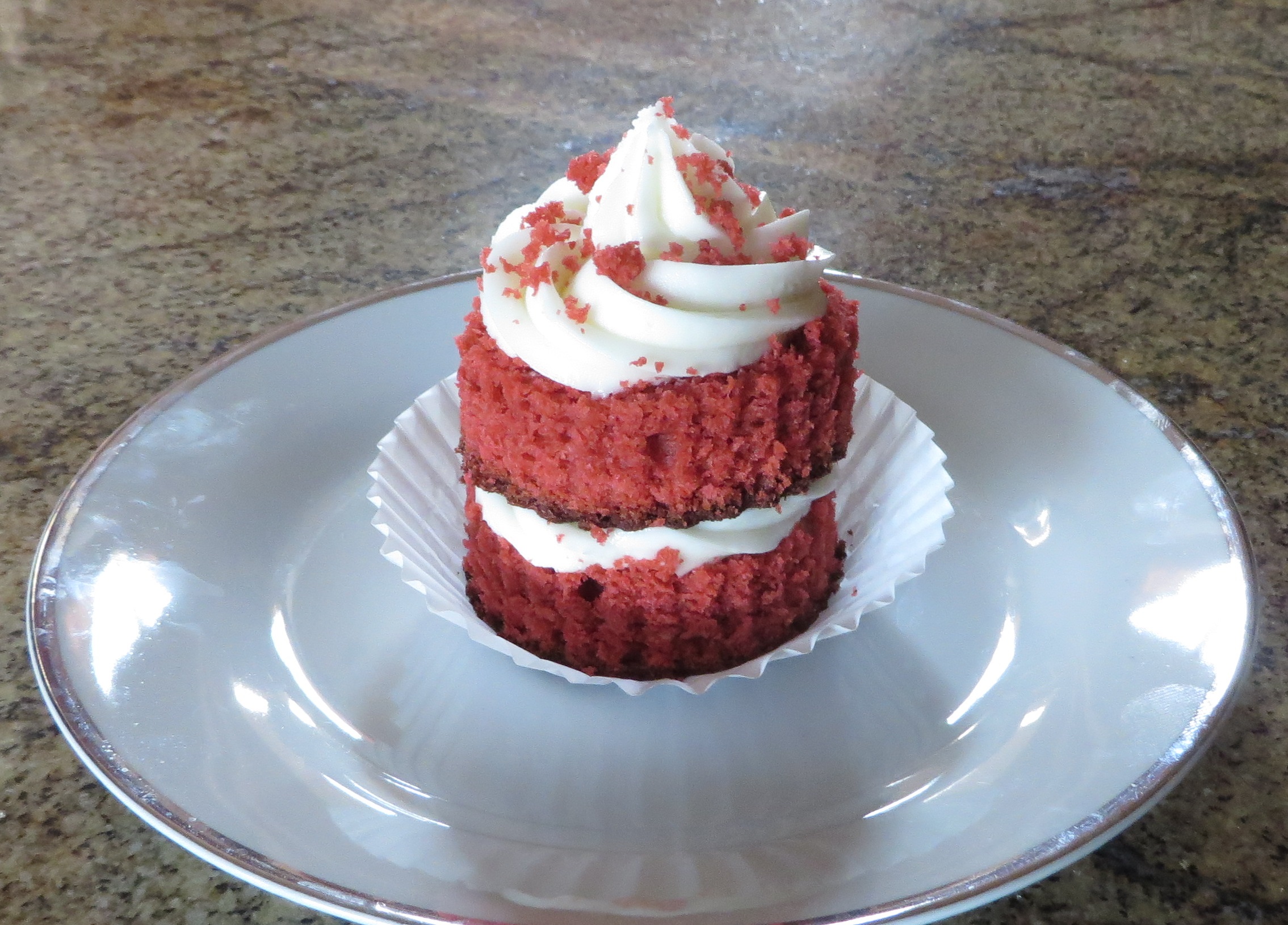 Red Velvet Mini Cakes - A delicious classic Southern Flavor ...the Red Velvet Cake - so popular now. Ours are little 2 1/2-inch rounds layered with our delicious Cream Cheese Frosting ...and a little garnish of Red Velvet crumbles for the top!