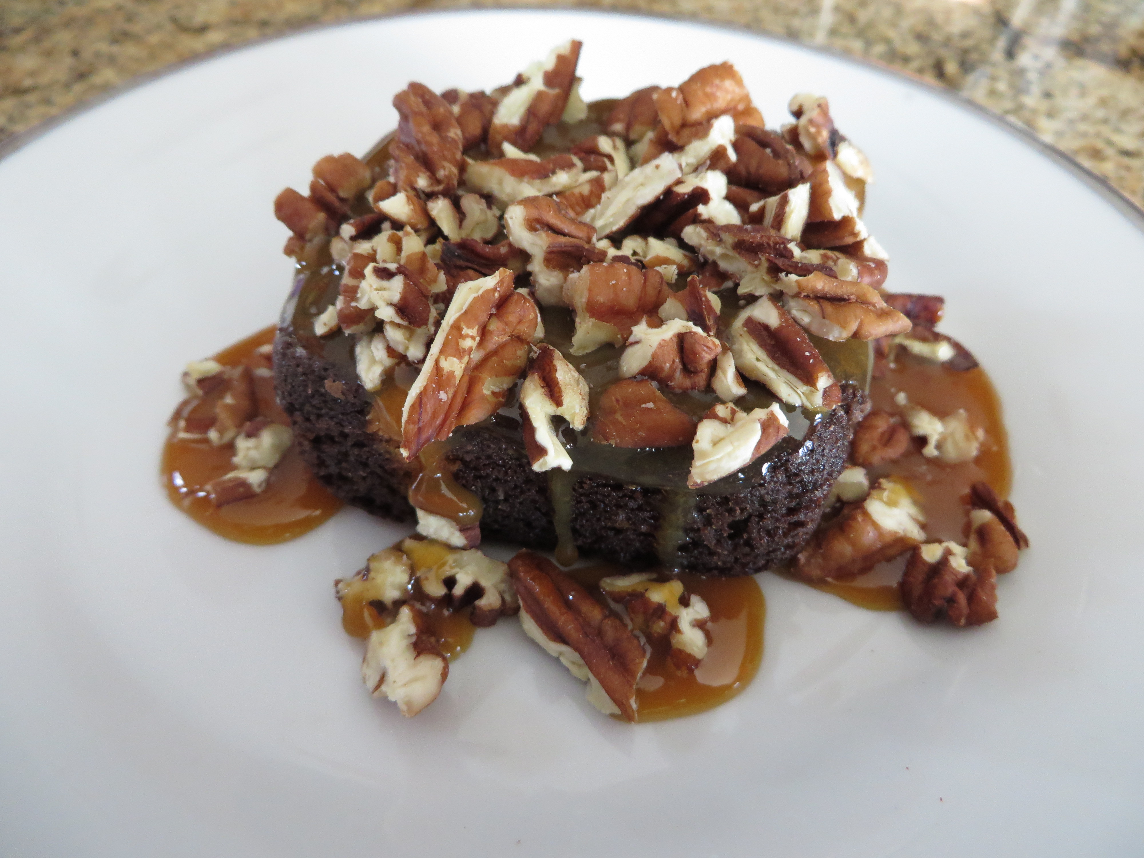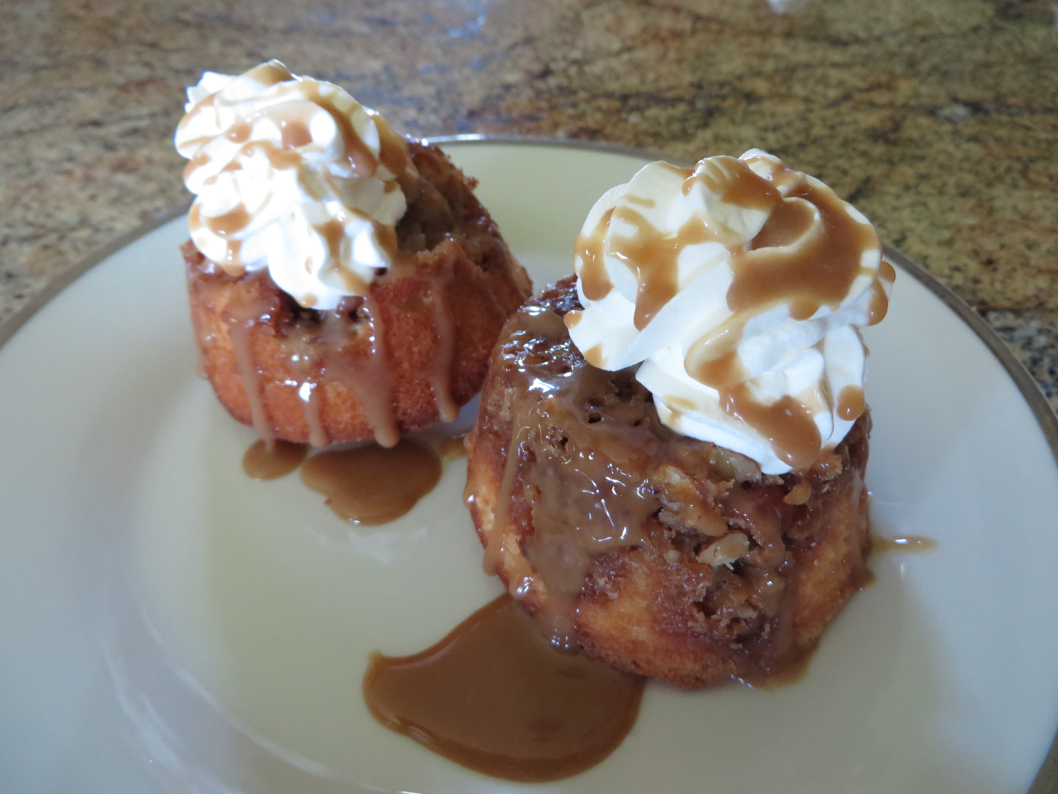 Individual Praline Cakes - Delicious little cakes topped with pecans, caramel and sweetened whipped cream. Incredible!