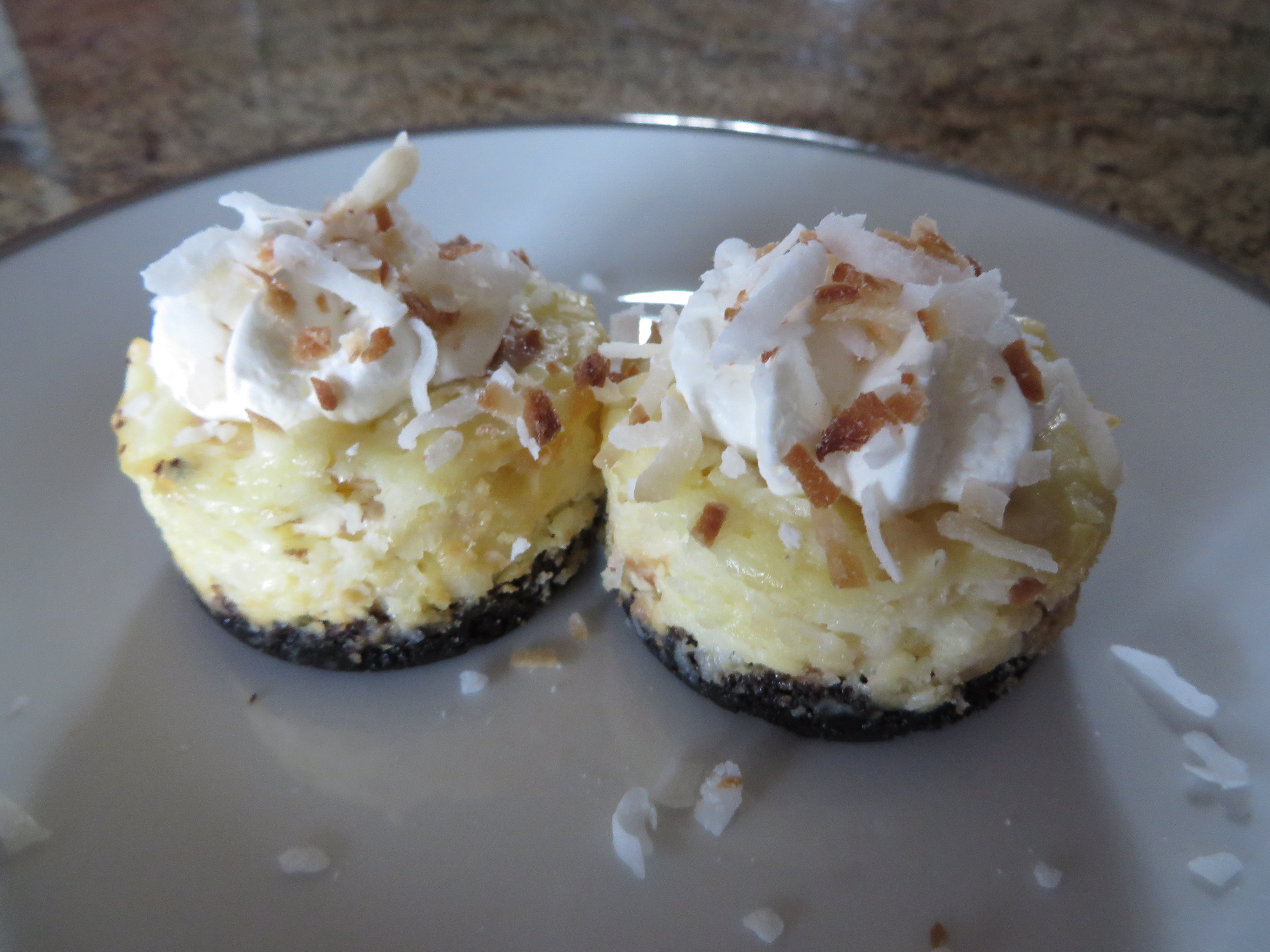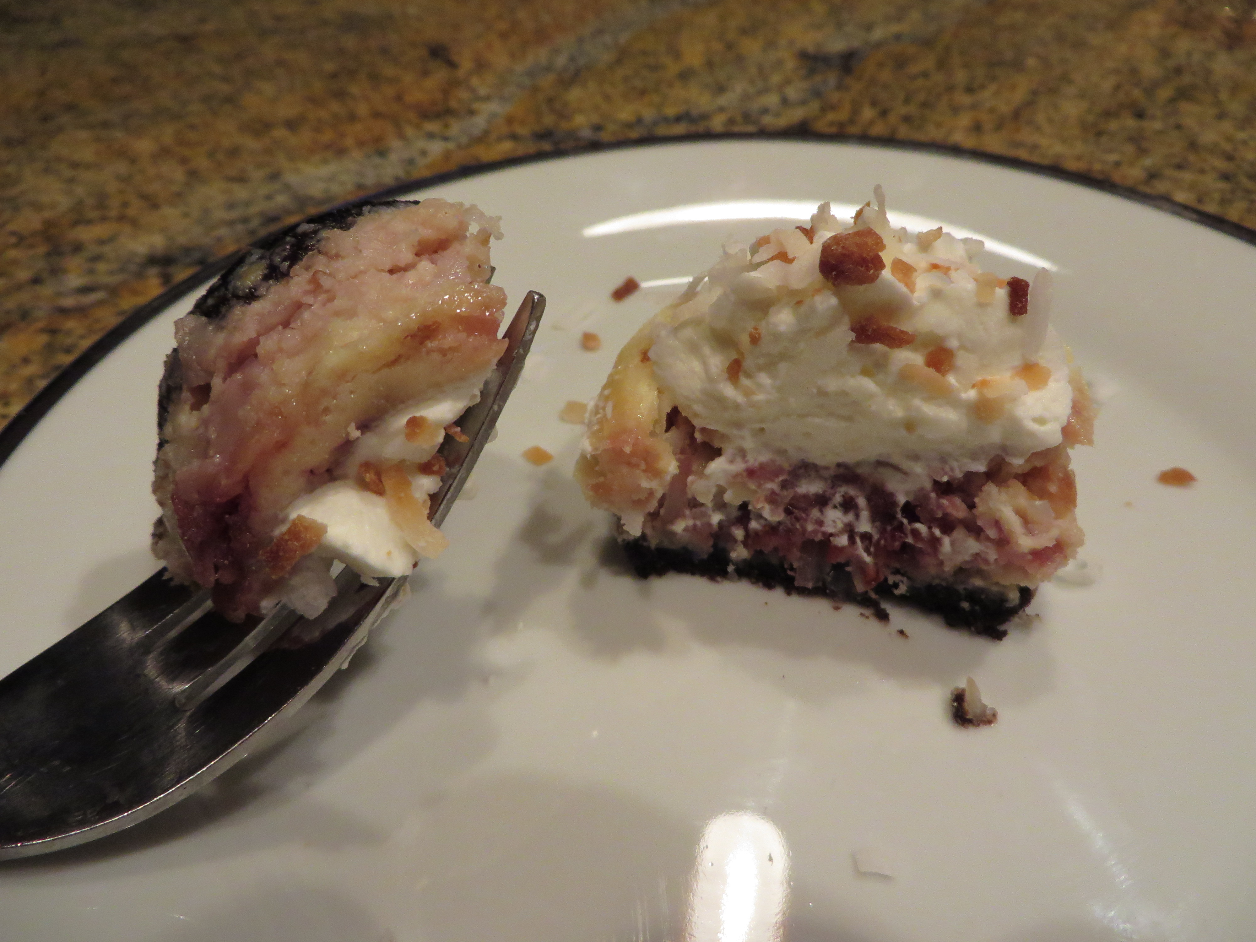 Coconut Cream - Another of our special crust cheesecakes; in this one, we mix toasted coconut with chocolate cookies and then fill the crust with a creamy coconut-y filling kissed with a touch of rum.