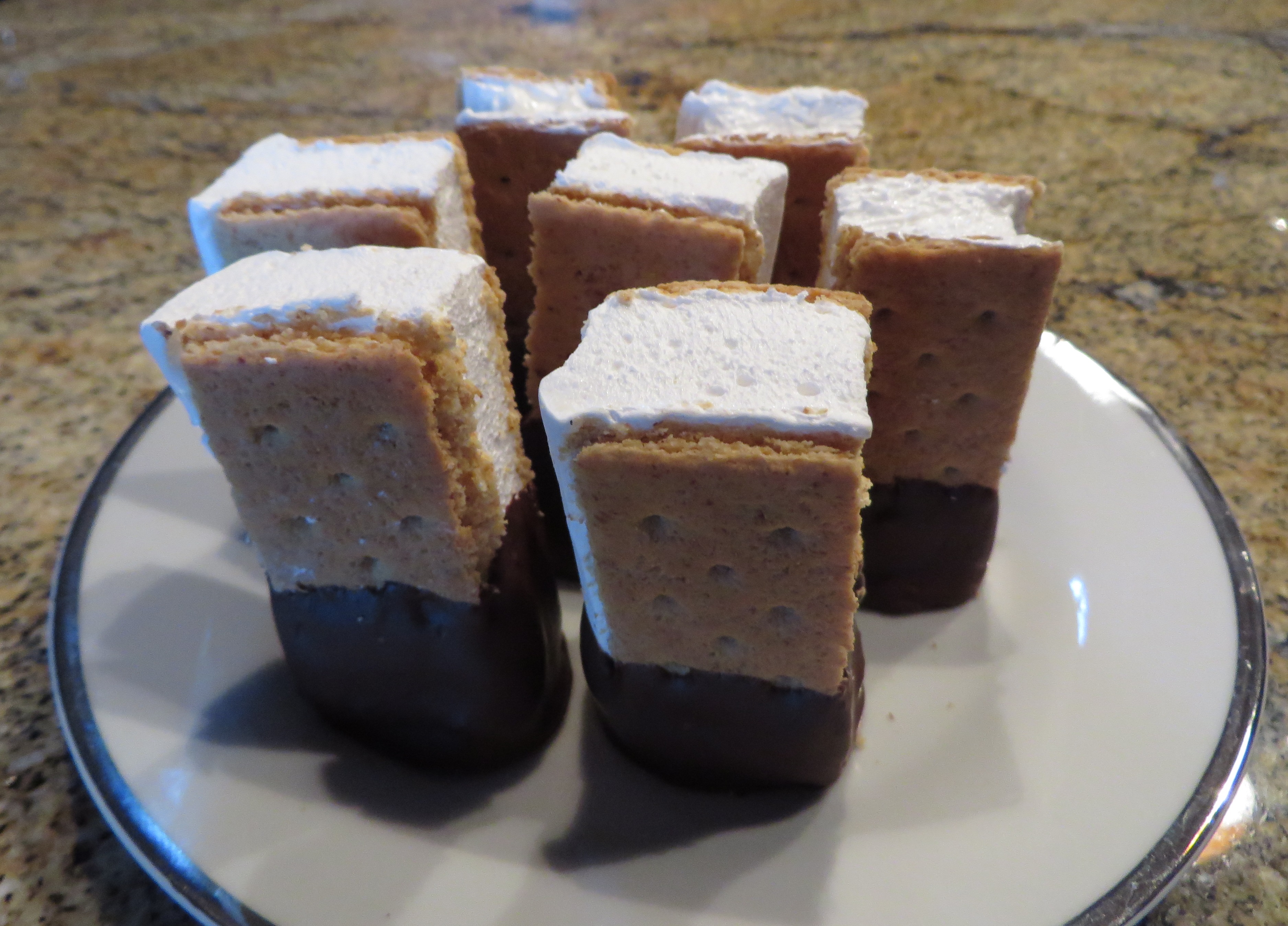 S'mores Sticks - Adorable little 'fingers' of Graham Crackers that sandwich our freshly made Marshmallow Filling before we dip them in Chocolate for you to enjoy!