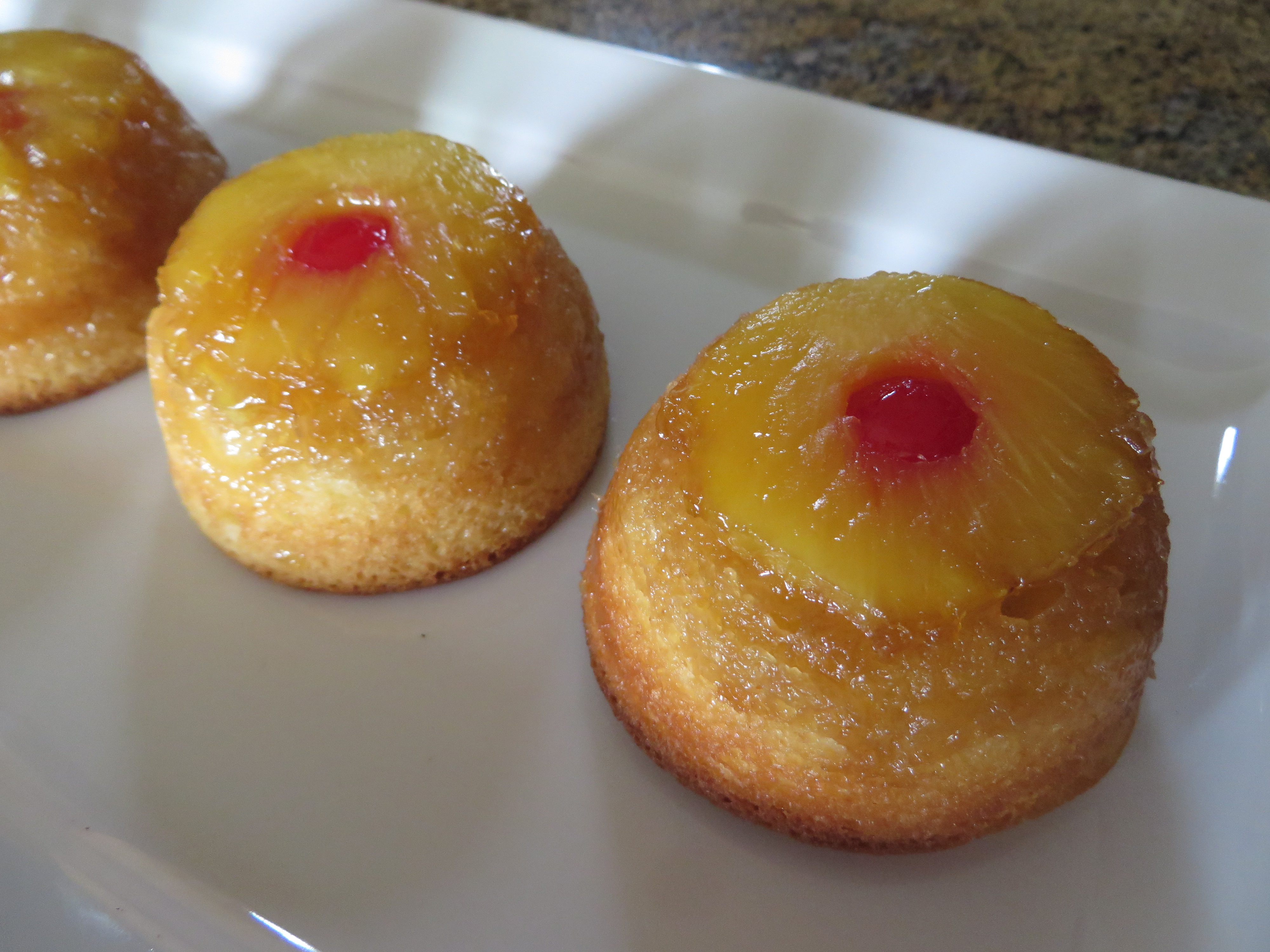 Individual Pineapple Upside-Down Cakes - Delicious little cakes that are just the right size. We actually cut fresh pineapple ourselves, so it just fits into the pans and gives a perfect Upside-Down Cake 'look' for your event. Can be topped with stabilized whipped cream on request.