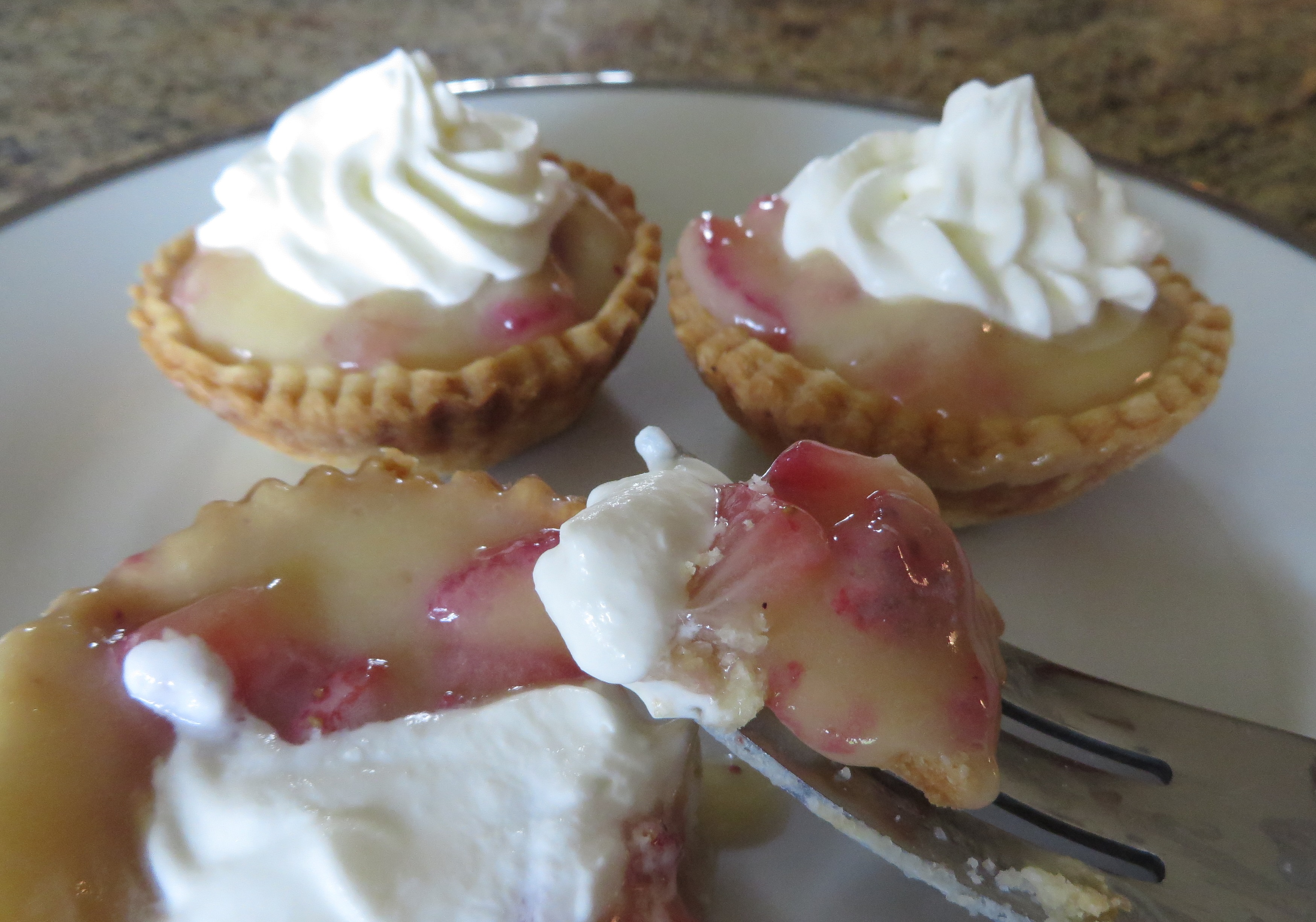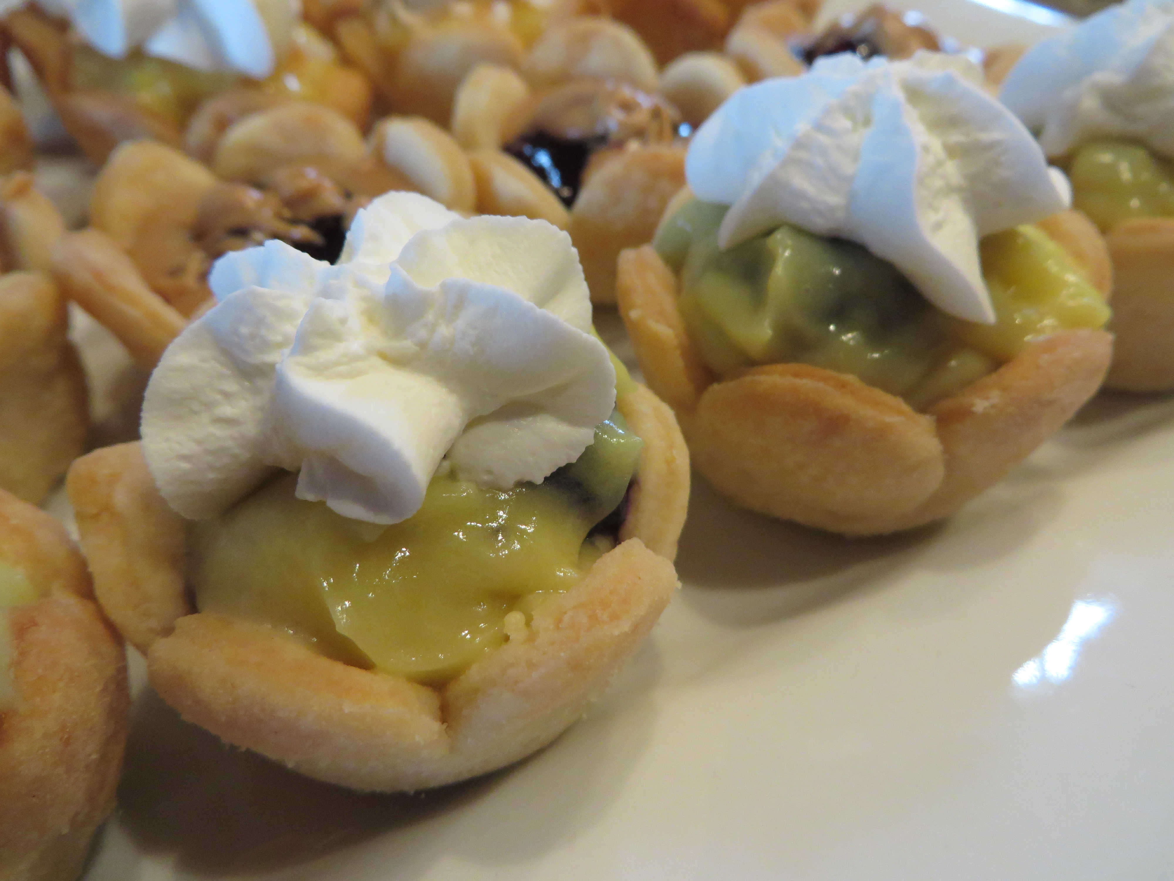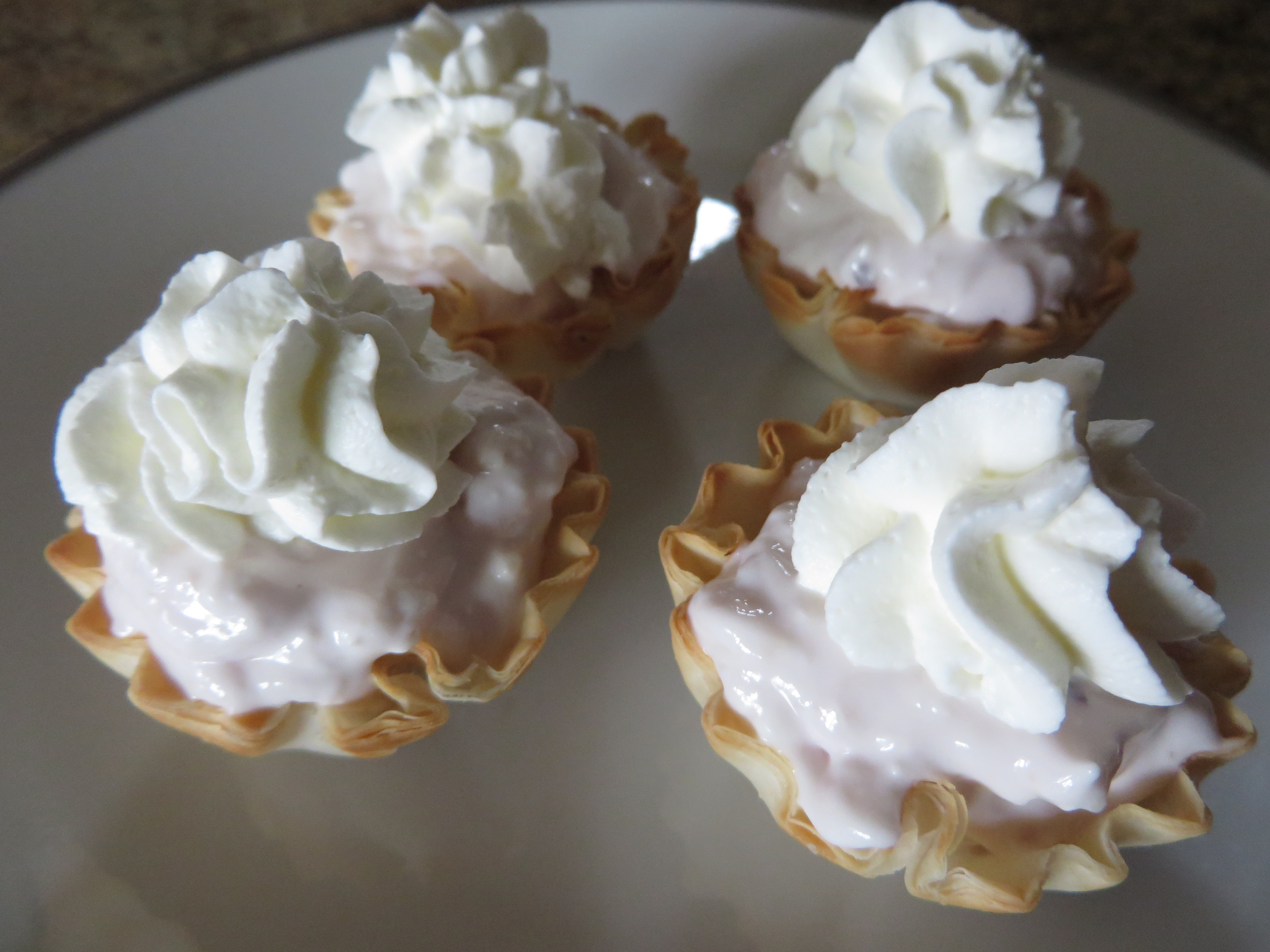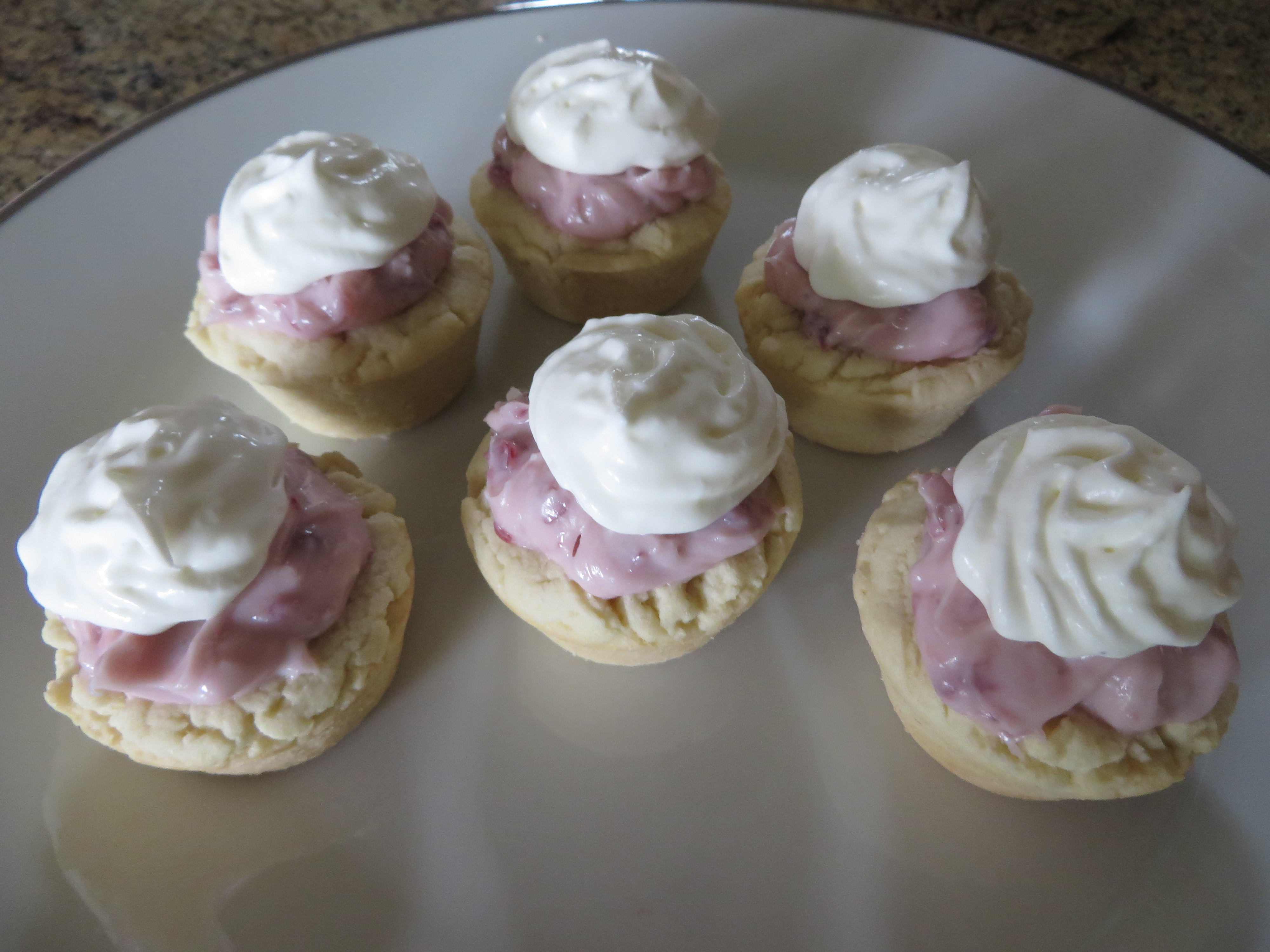 Raspberry-Pineapple Cream - Cream Cheese, raspberry preserves and crushed pineapple piped into a Phyllo tart shell.