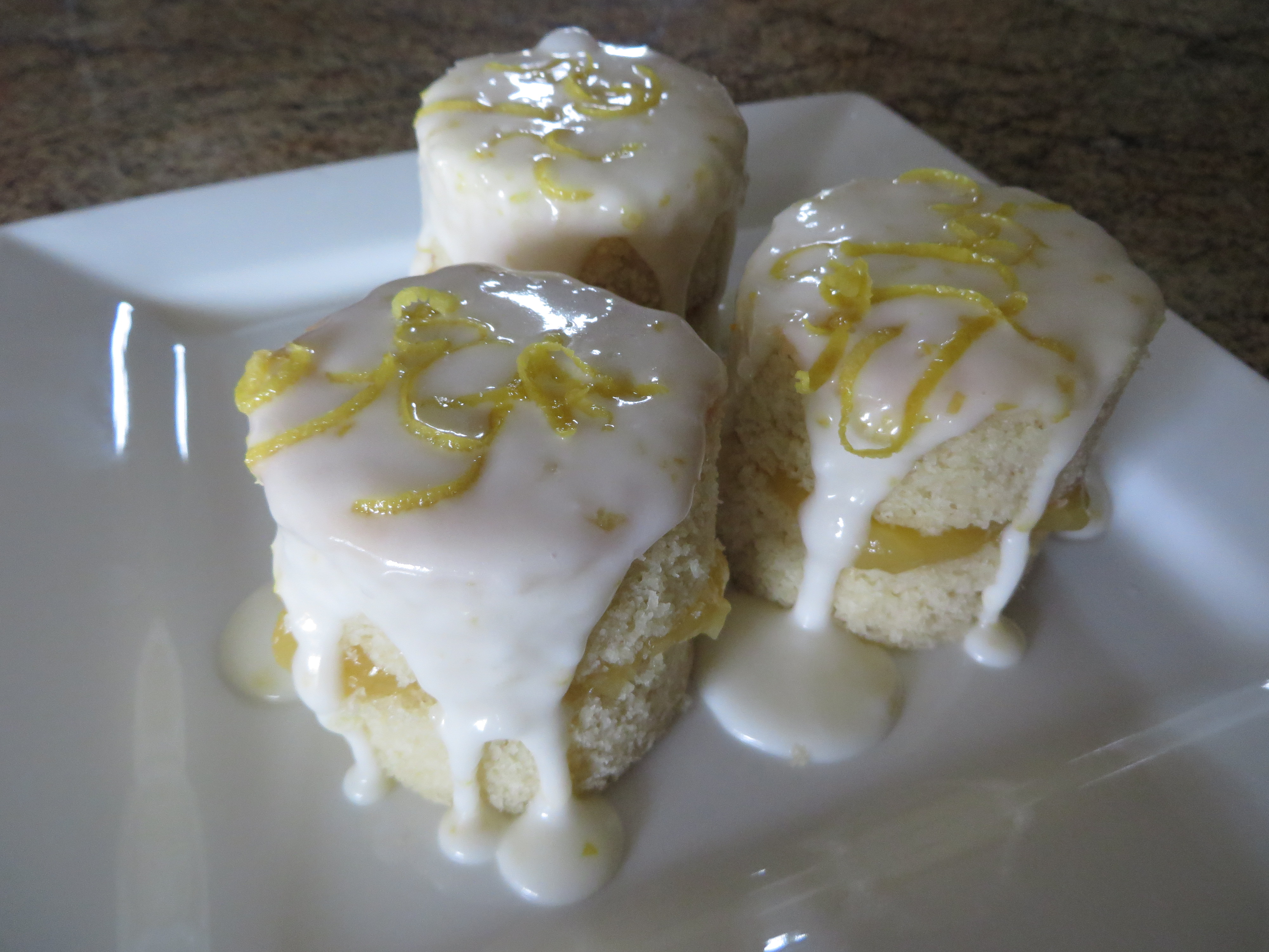 Lemon Champagne Mini Cakes - They're so pretty and make a fabulous little showpiece. Delicious little Lemon Champagne Cake rounds sandwich a Lemon filling; it all comes together with a sweet and tangy lemon glaze that tops it all off.