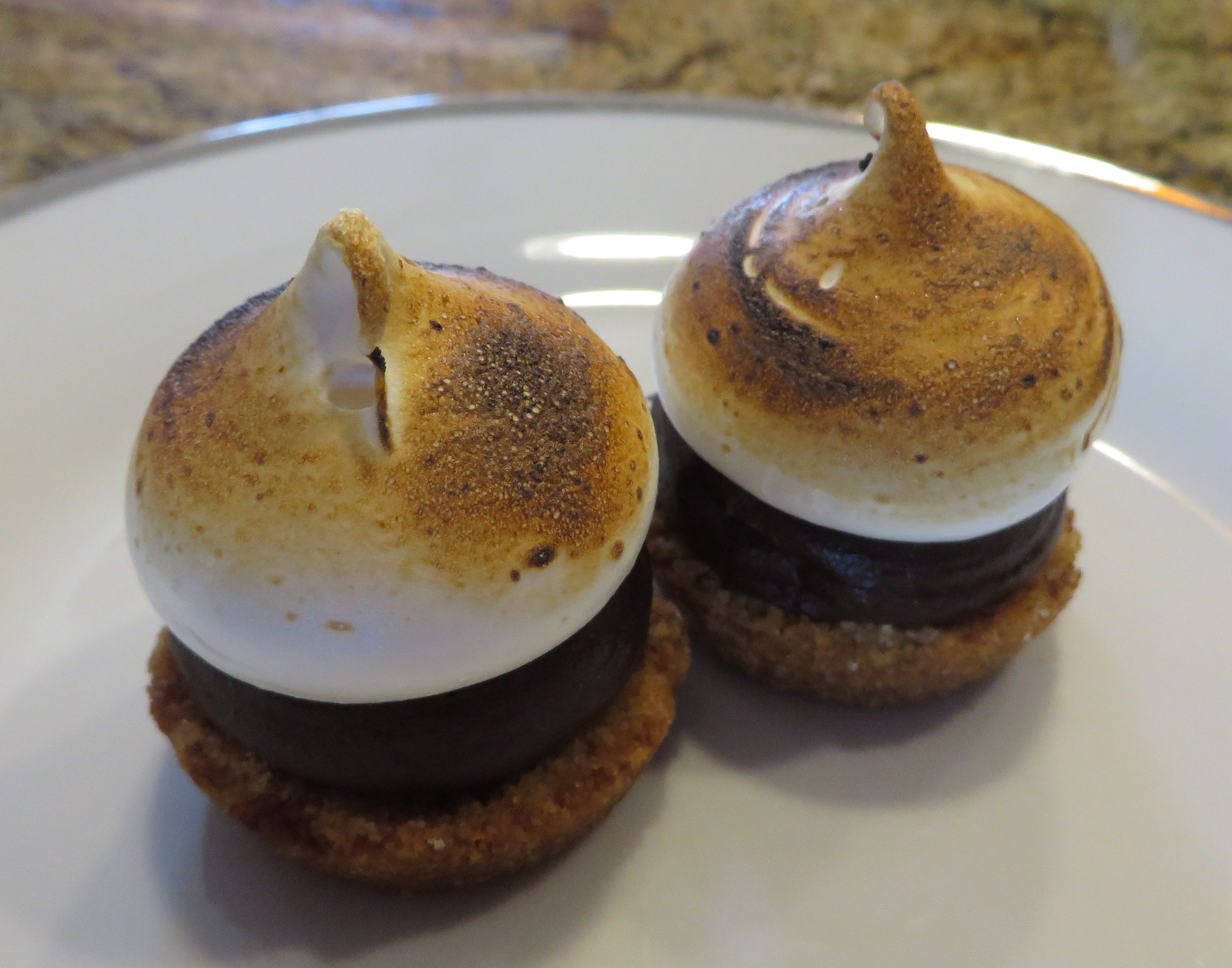 S'mores - A graham base, a rich chocolate ganache filling and a toasted marshmallow top.
