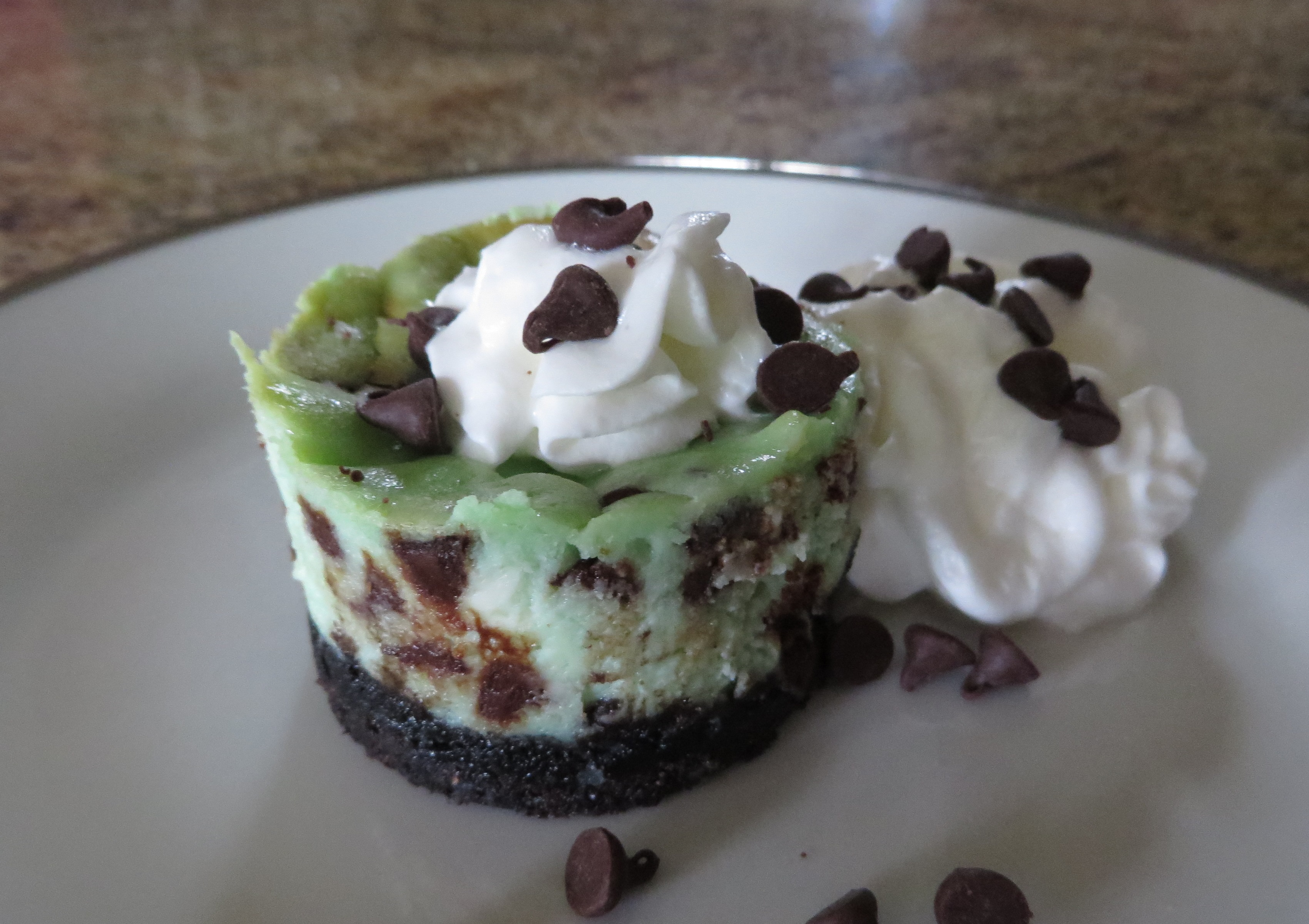 Mint Chocolate Chip - This one is a little stronger than the Creme de Menthe cheesecake we offer to balance out the addition of mini chocolate chips and an Oreo Cookie crust.