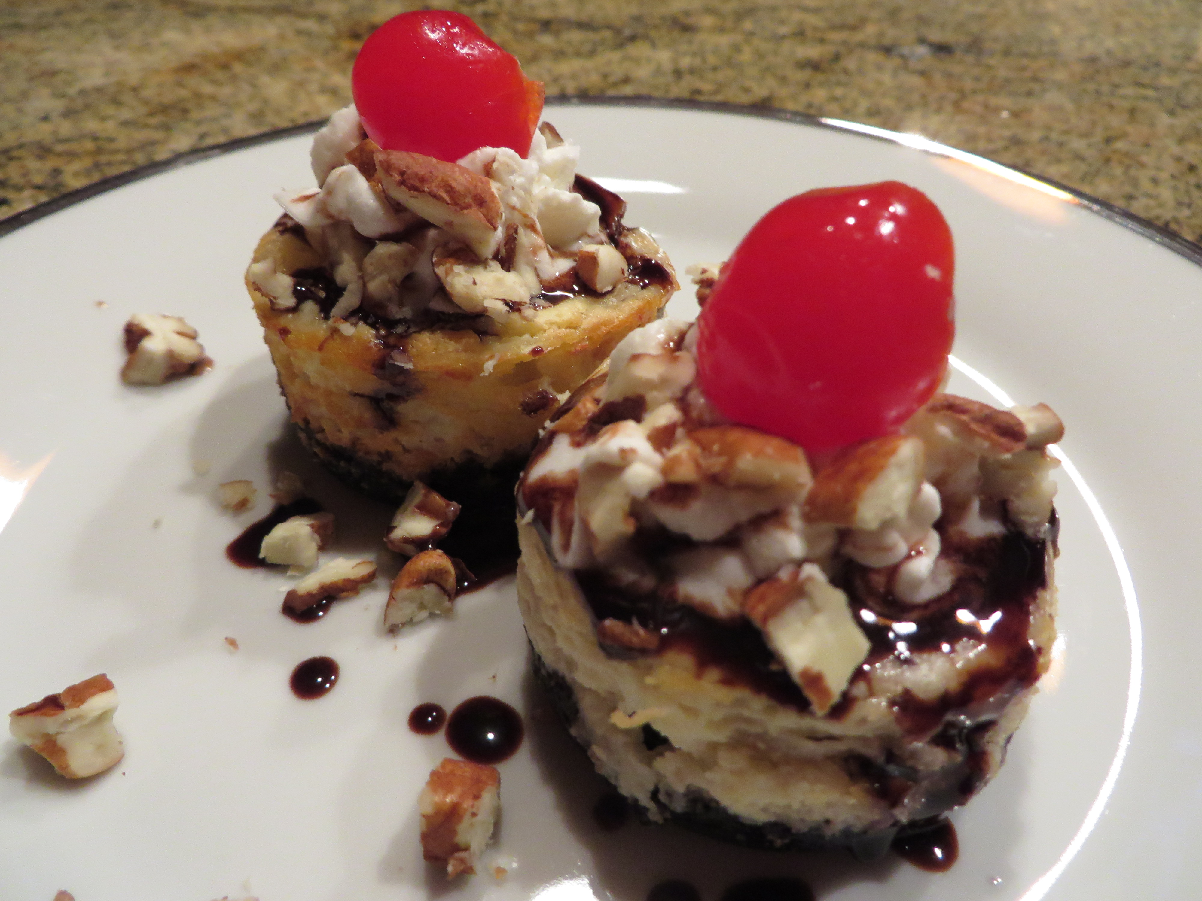 Banana Split - We were going to offer only 2 Banana Cheesecakes on the Premium Menu before we remembered this version; we use our Banana Cheesecake to start, swap the graham cracker-nut crust for a chocolate crust and then top it with fresh, lightly sweetened whipped cream, chopped nuts, a drizzle of chocolate sauce and - of course - a cherry to top it all off!