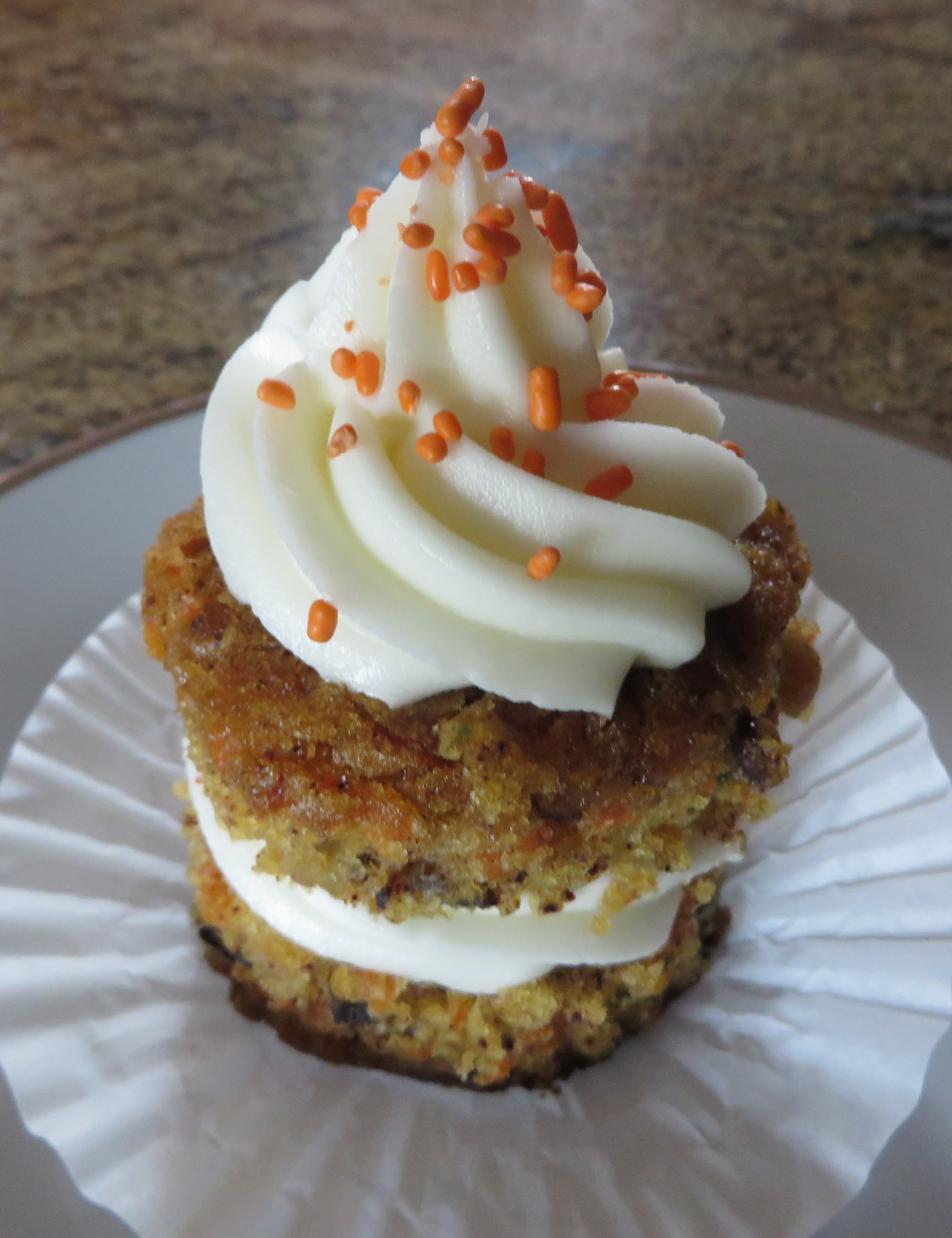 Mini Carrot Cakes - Delicious little individual sized two layer carrot cakes with luscious cream cheese frosting both in between layers and piped on top.