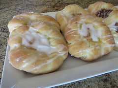 These are really an amazing pastry; a tender yeast dough surrounds one of two fillings - either cinnamon-sugar or almond, then a drizzled vanilla or almond glaze to complete the pastry.