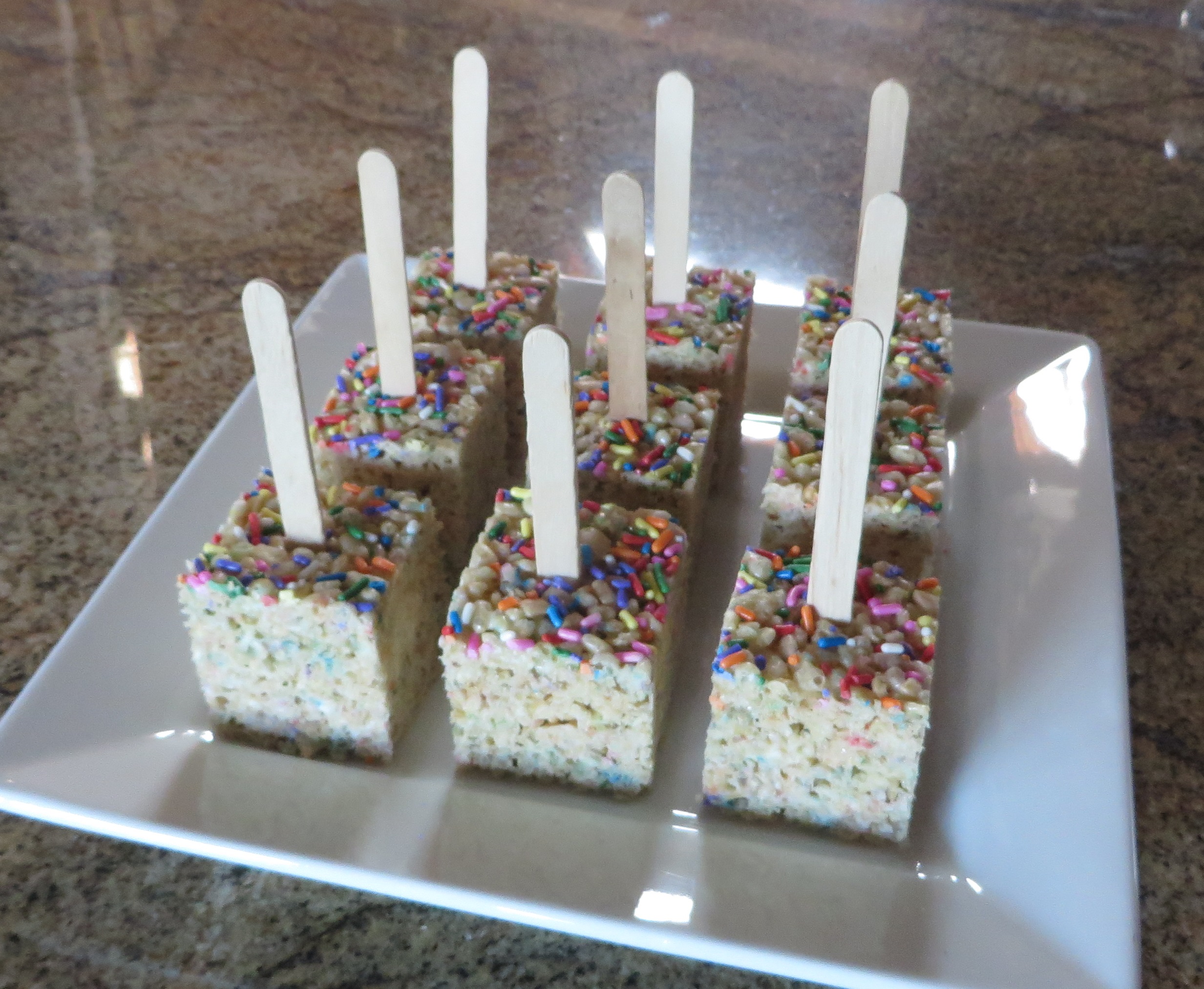 Rice Krispie Treats - Nice, basic Rice Krispie Treats! Who doesn't like these? Choose them 'standing' with skewers if you'd like.